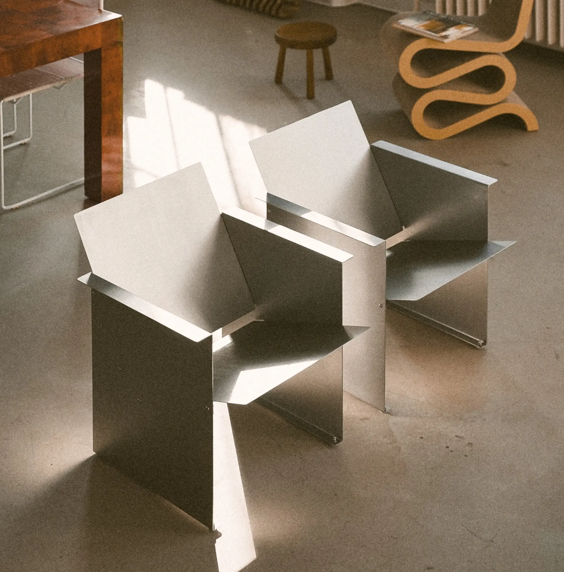 The S1 Lounge Chair is a modular stainless-steel chair designed for versatility, longevity, and conscious production. It can be easily disassembled and shipped in a compact package, reducing shipping volume and carbon footprint. Made from 100 % recycled stainless steel, every part is designed for future disassembly and reuse, with minimal transformation processes. The chair can integrate optional accessories that allow users to customize its function and comfort, adapting to both indoor and outdoor settings. Its simplicity, durability, and circular design make it a timeless object for modern living.