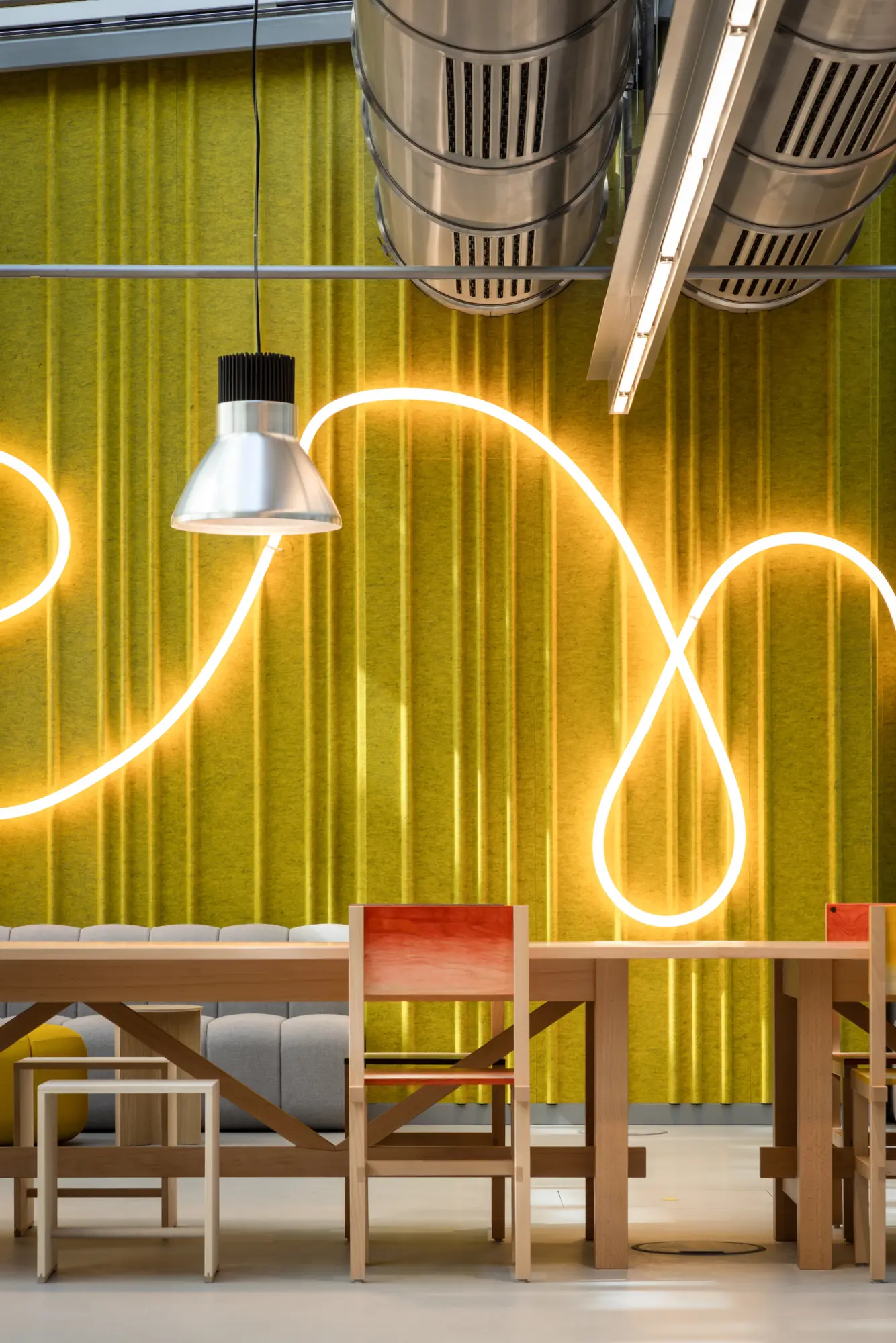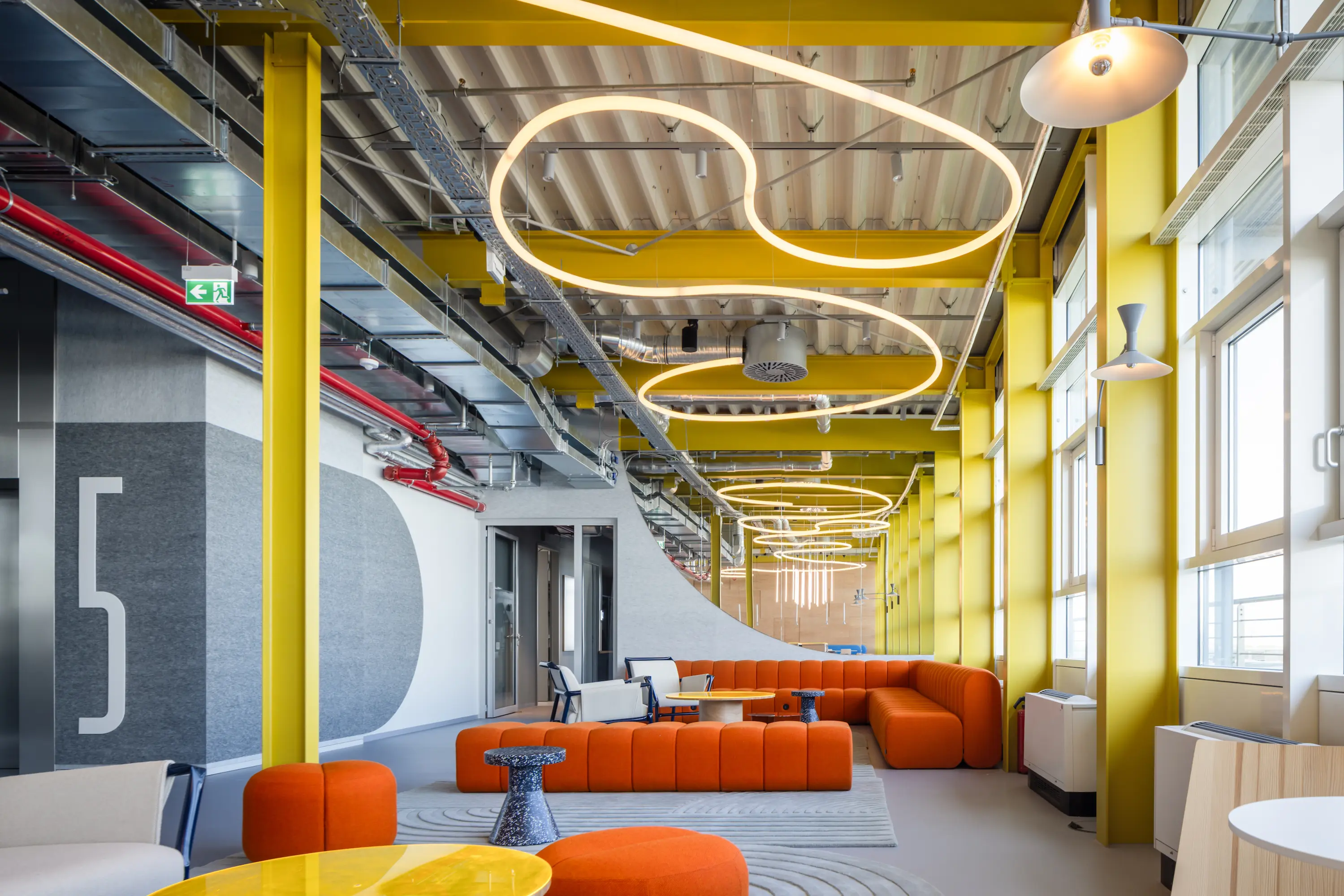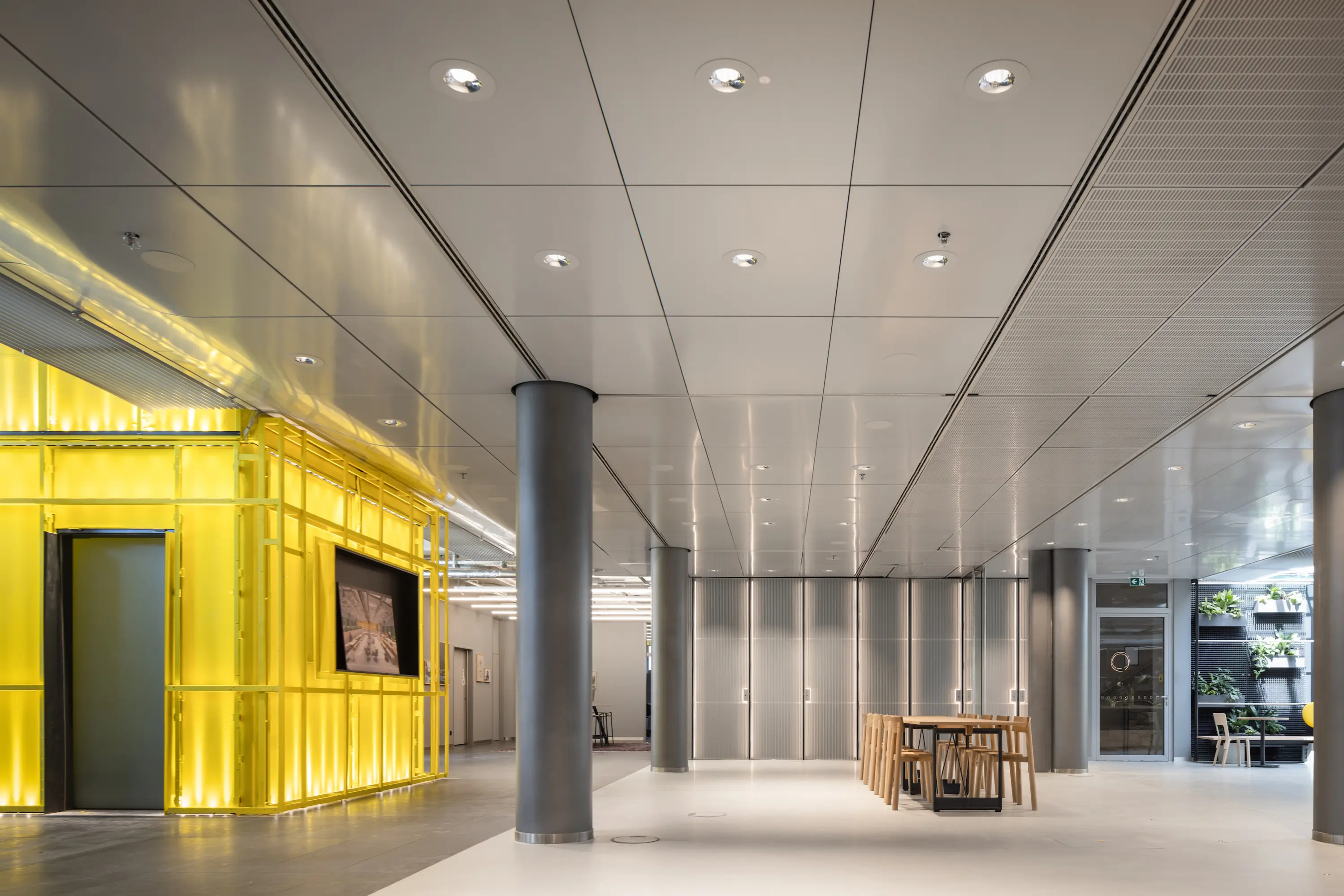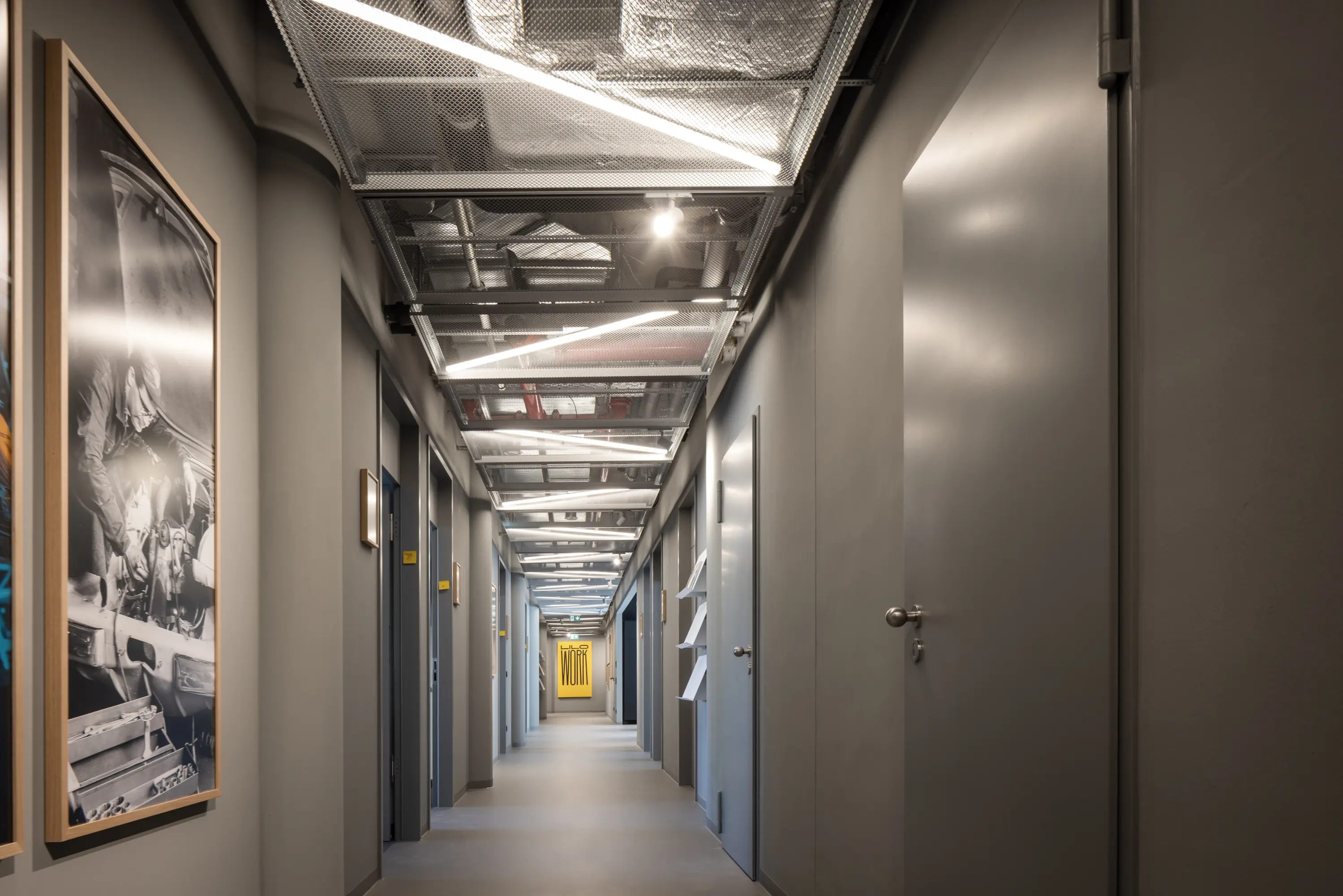 The three buildings on Lilienthalallee in Munich Freimann, which measure around 45,000 square metres, have been sustainably revitalised for full-service office units. Together with the owner GVG and Michael Schmutzer, we developed a holistic concept comprising interior design and architecture, which is integrated into a comprehensive brand strategy. The guiding principle is ‘entrepreneurship’: attributes such as young, open, flexible and international characterise the design, which is aimed at innovative companies and start-ups. The central idea was to make the revitalisation as resource-conserving and substance-preserving as possible. In addition, natural and sustainable materials were used for the interiors.