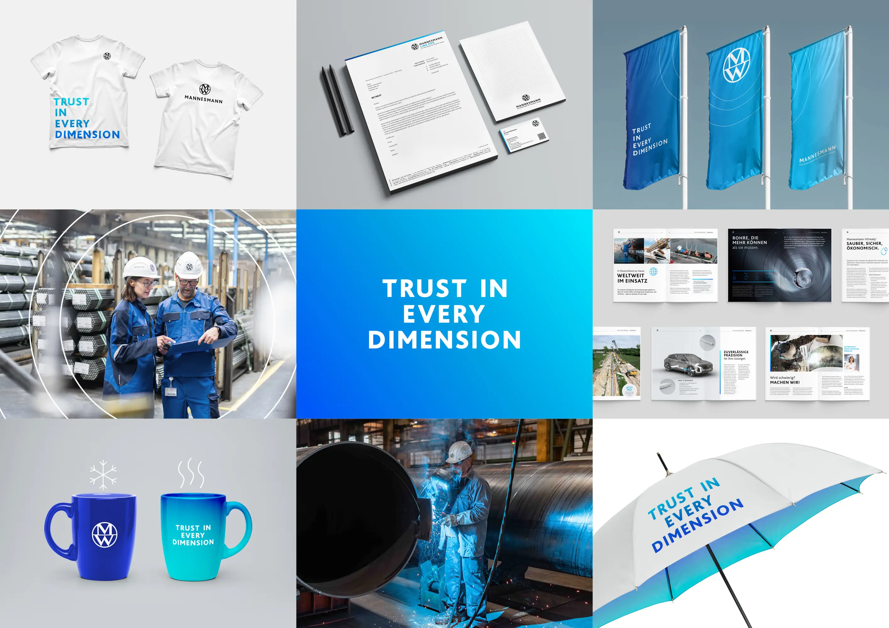 The brand relaunch of Mannesmann creates a future-ready, distinctive corporate identity with a clear, authentic, and engaging tone of voice. The logo anchors people, production, and pipes at its core. The guiding principle “TRUST IN EVERY DIMENSION”, brought to life through an emotional brand story that makes trust both tangible and relatable. Visually, the claim is expressed through three concentric rings that sharpen the focus. A dynamic colour gradient bridges tradition with innovation. Colours, imagery, and design elements form a consistent branding that seamless unites the company, its products, and its subsidiaries across all channels.