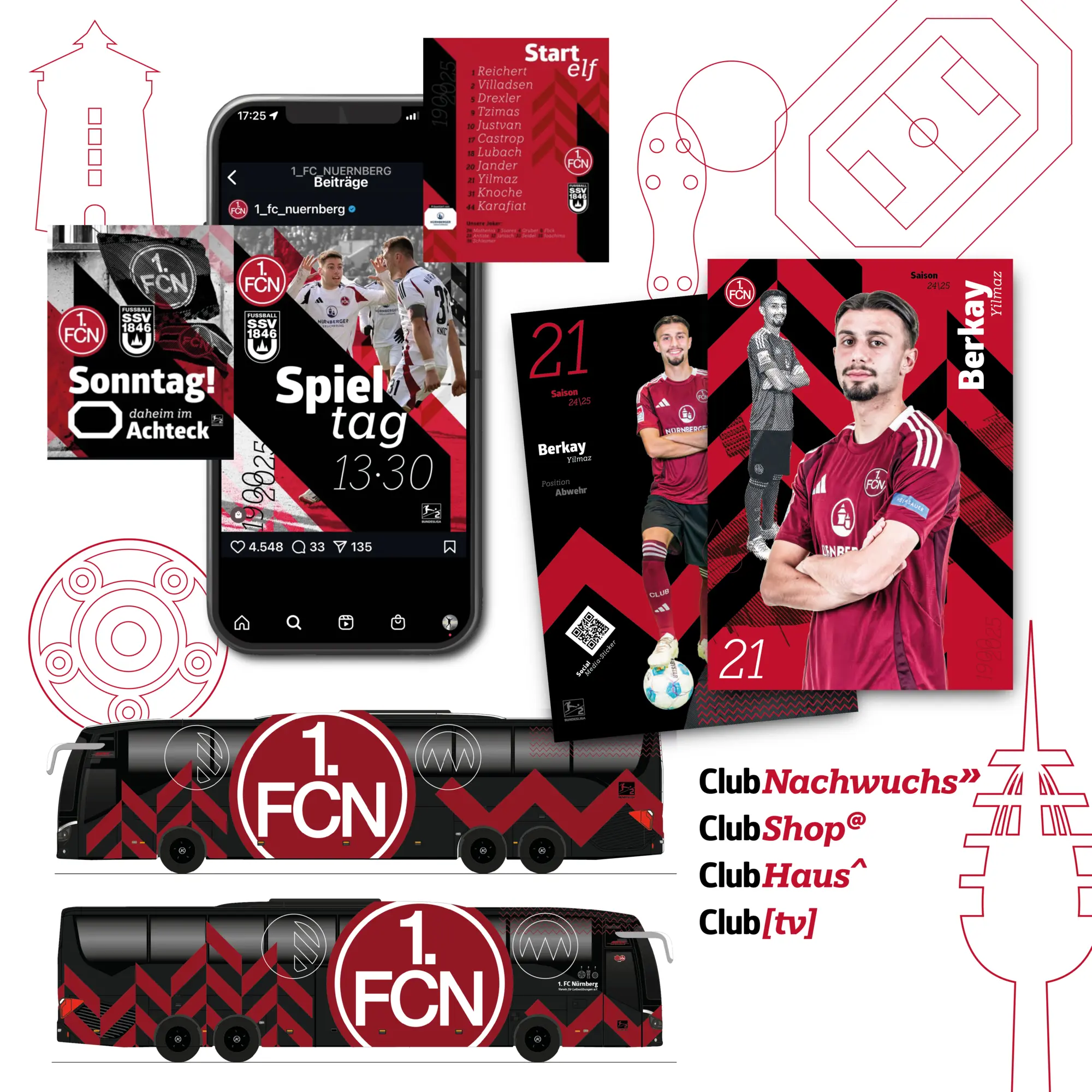 Nine national championships make 1. FC Nürnberg Germany’s vice record champion. Four cup victories and additional titles establish the Club as one of the country’s most traditional football institutions. With more than 37,000 members, “Der Club” represents not only Nuremberg but the whole of Franconia and Northern Bavaria. In 2025, the club celebrates its 125th anniversary – the perfect occasion to redefine its visual identity. The new design unites tradition and modernity, regional roots, and both sporting and social commitment in a distinctive visual identity.