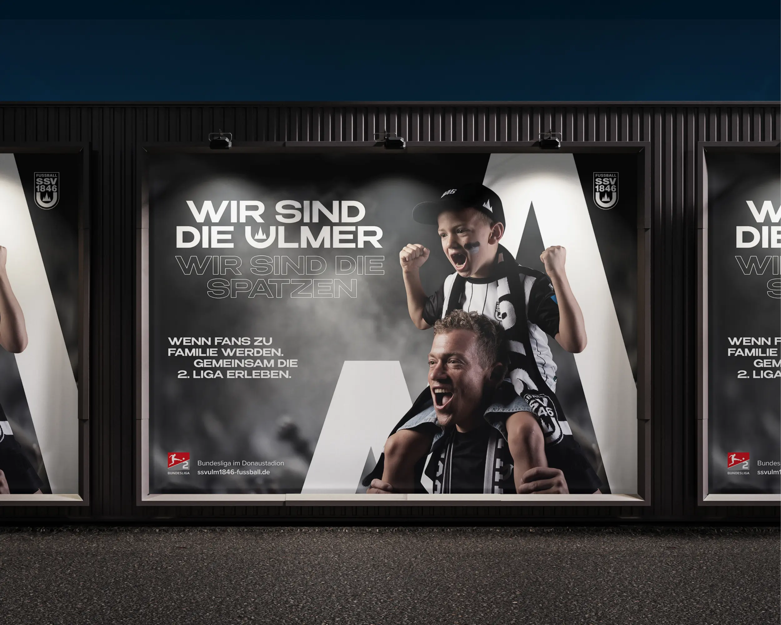 From club to brand – within 24 months, we accompanied SSV Ulm 1846 Fußball on a journey from regional league to the 2nd Bundesliga. After a brand workshop that produced clear values and a strategic direction, we developed a striking corporate design, created content formats, established a merchandising line, and produced a documentary about the club's rise to prominence, which was a hit in cinemas and on Amazon Prime. The result: SSV Ulm has quickly developed into a strong brand that has become an integral part of German professional soccer.