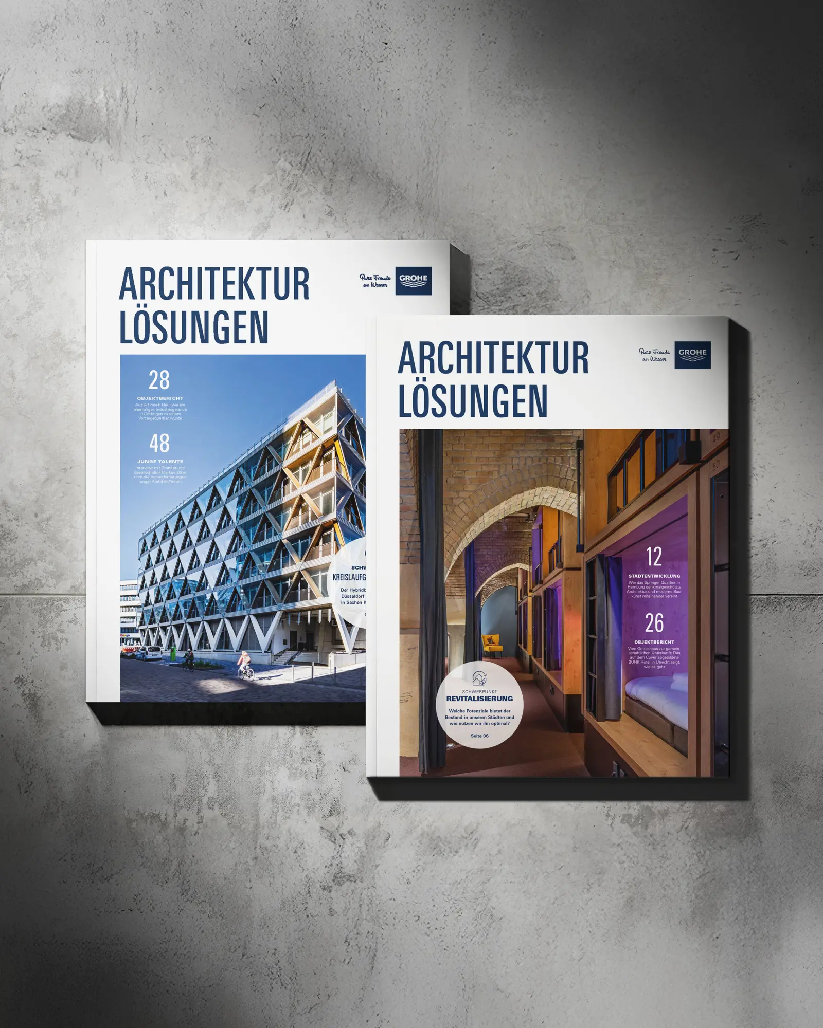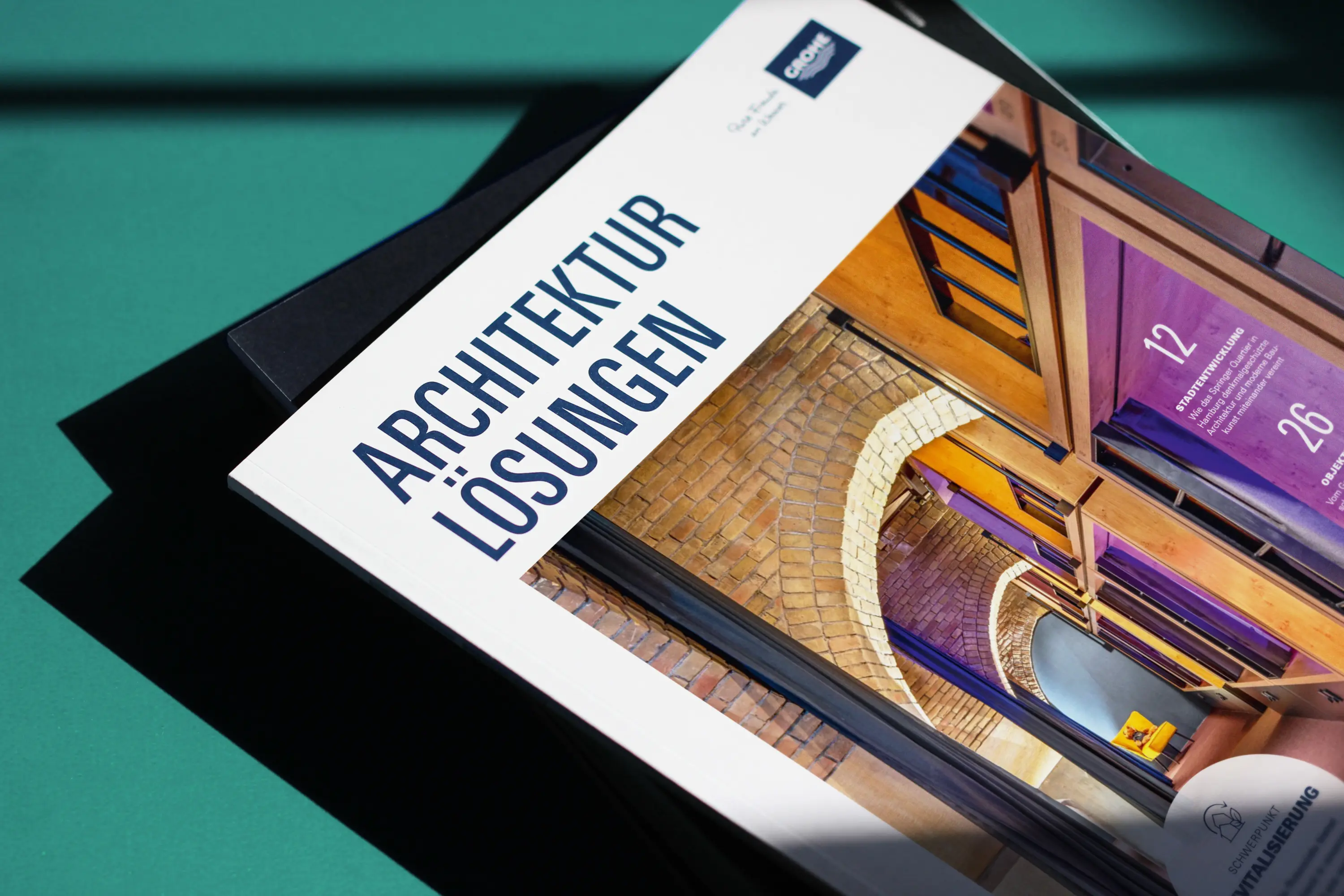 „Architekturlösungen“ is a cross-media B2B magazine by GROHE, tailored for architects and planners. It blends premium print aesthetics with strong digital visibility, positioning GROHE as an innovative partner for technological, sustainable, and functional sanitary solutions with a high design standard. The magazine focuses on editorial relevance, visual clarity, and practical content—offering guidance for everyday planning while inspiring new perspectives for the future of building.
