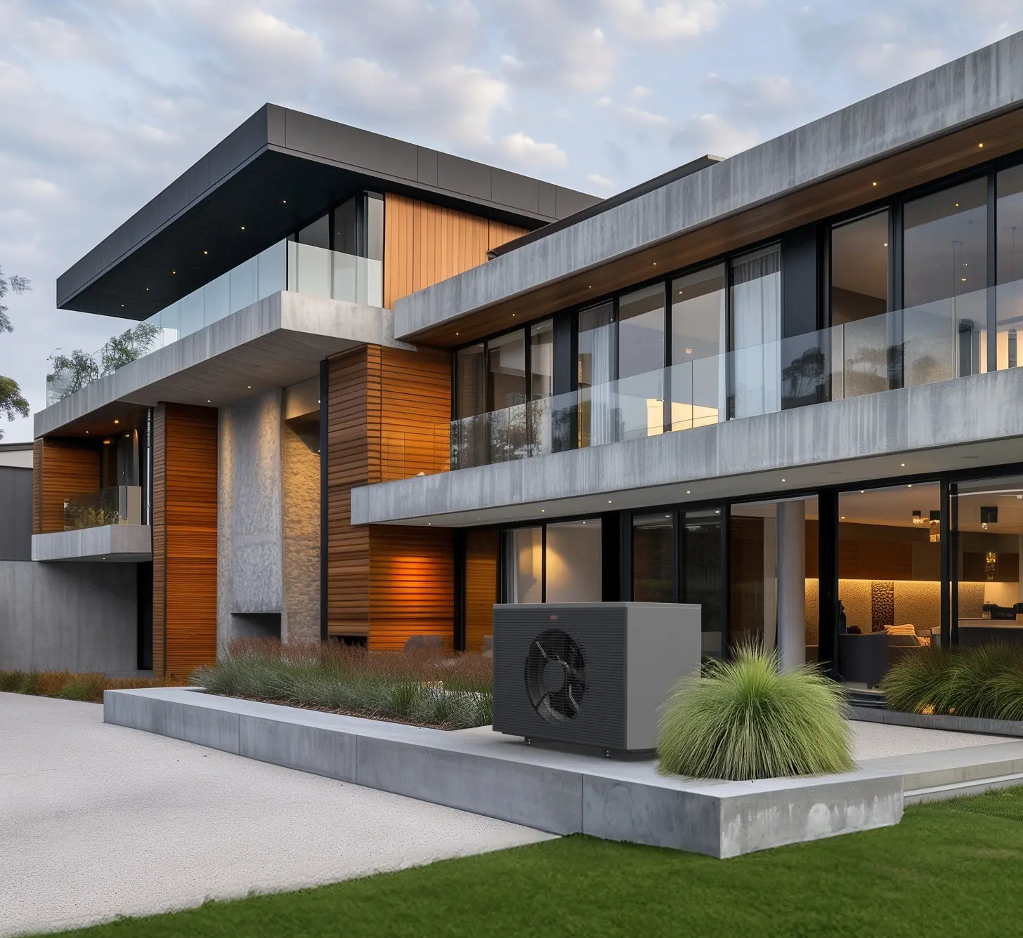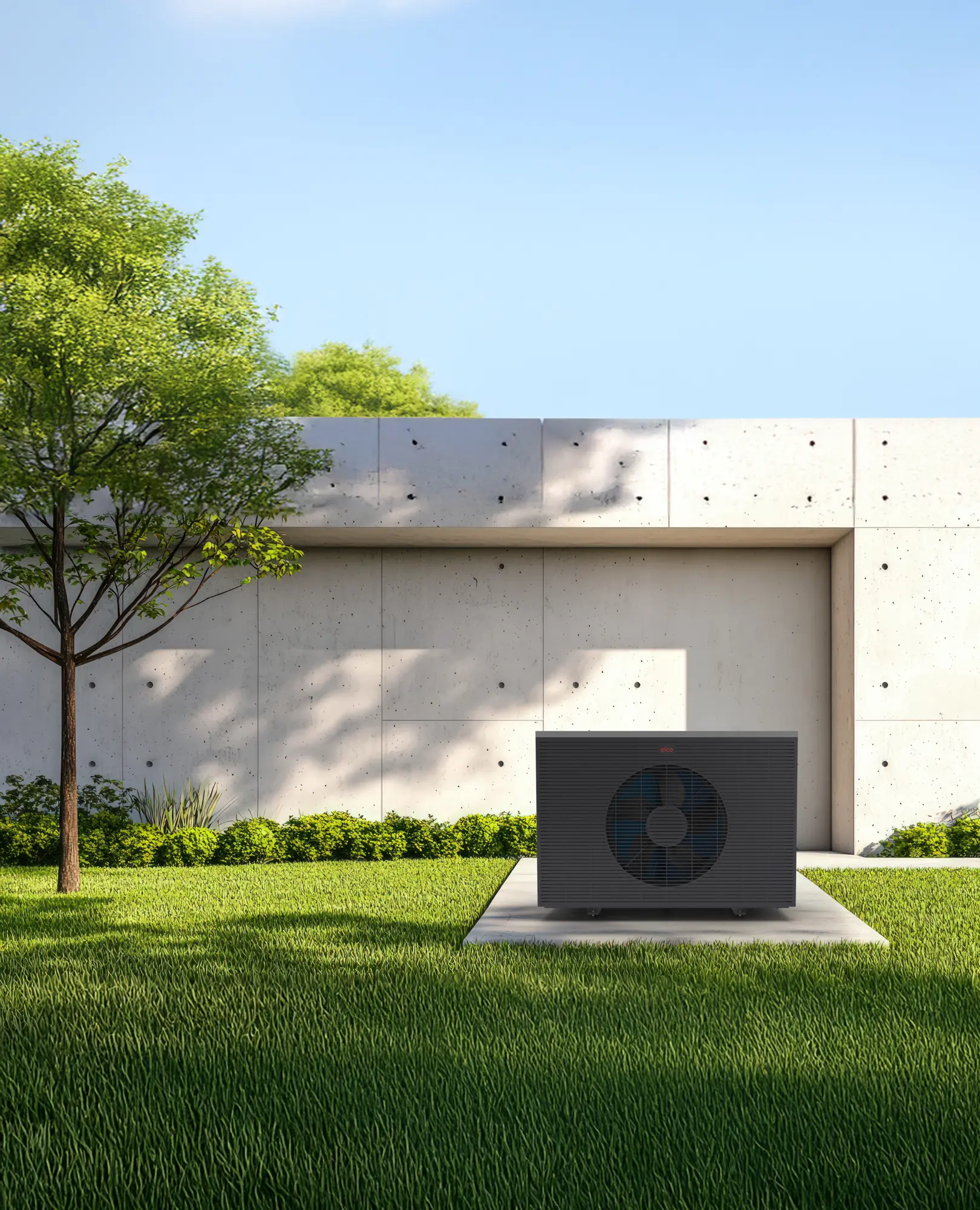 The AEROTOP® SPK16/20 heat pump embodies a puristic, timeless design that goes beyond form and surface. Clear geometry, balanced proportions, and premium material quality create a strong visual identity while reflecting durability and efficiency. Sustainability is ensured by using propane (R290), one of the most climate-friendly natural refrigerants, combined with energy efficiency up to A+++. Whisper-quiet operation, long-term reliability, and a seamless architectural integration make it a solution for today and a future-ready design statement.