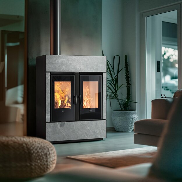 The hybrid wood and pellet stove provides flexible heating options by combining the benefits of both wood and pellet stoves in one solution. With its separate combustion chamber, it allows users to choose their preferred fuel, ensuring even heat distribution with innovative technologies such as a self-cleaning grate and automatic pellet dosing. The »DUAL AIR« impresses with its thoughtful functionality, efficiently and sustainably addressing energy needs.