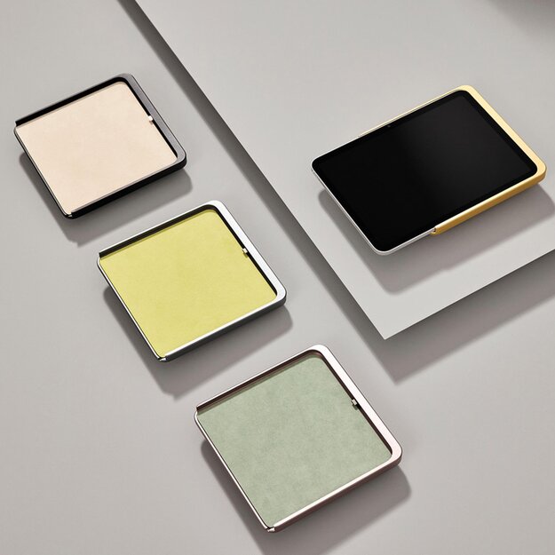 The “Dame Wall Home 2.0” iPad docking station impresses with its timelessly elegant and slim design, which looks extremely elegant and high-quality thanks to the combination of anodized aluminium and Alcantara. The holder can be used in both portrait and landscape format, and the open shape makes it easy to insert and remove. An attractive design that perfectly combines form and function.