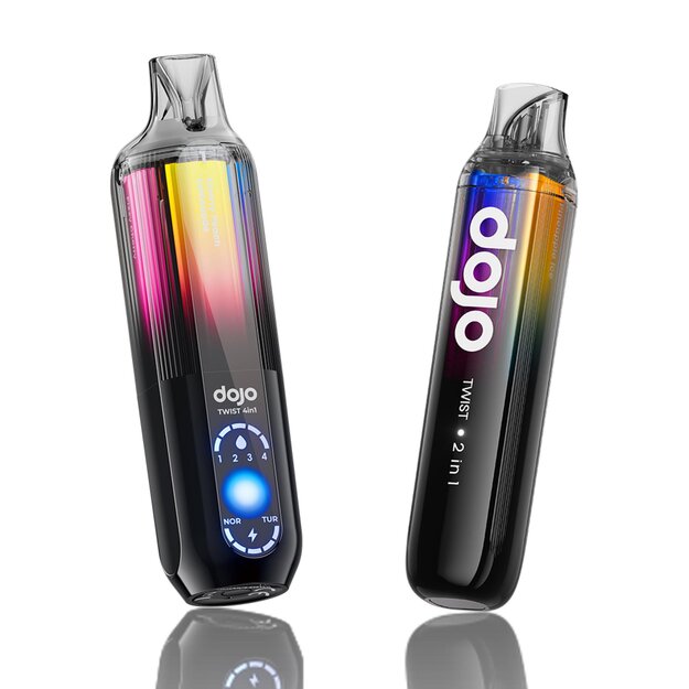 The vape DOJO TWIST series blends design and functionality for discerning vapers. The 4in1 and 2in1 models are sleek, with smooth lines, refined finishes, and translucent exteriors. Their colours are subtly vibrant. The 4in1 has a groundbreaking dual-display, offers four-flavour switching, and up to 3200 puffs. The 2in1 is ultra-compact, has two prefilled pods for up to 1600 puffs. Both are VAPORESSO-powered, use the COREX 2.0 mesh coil for great flavour, and have compatible pods enhancing versatility, representing a high point in vaping design.