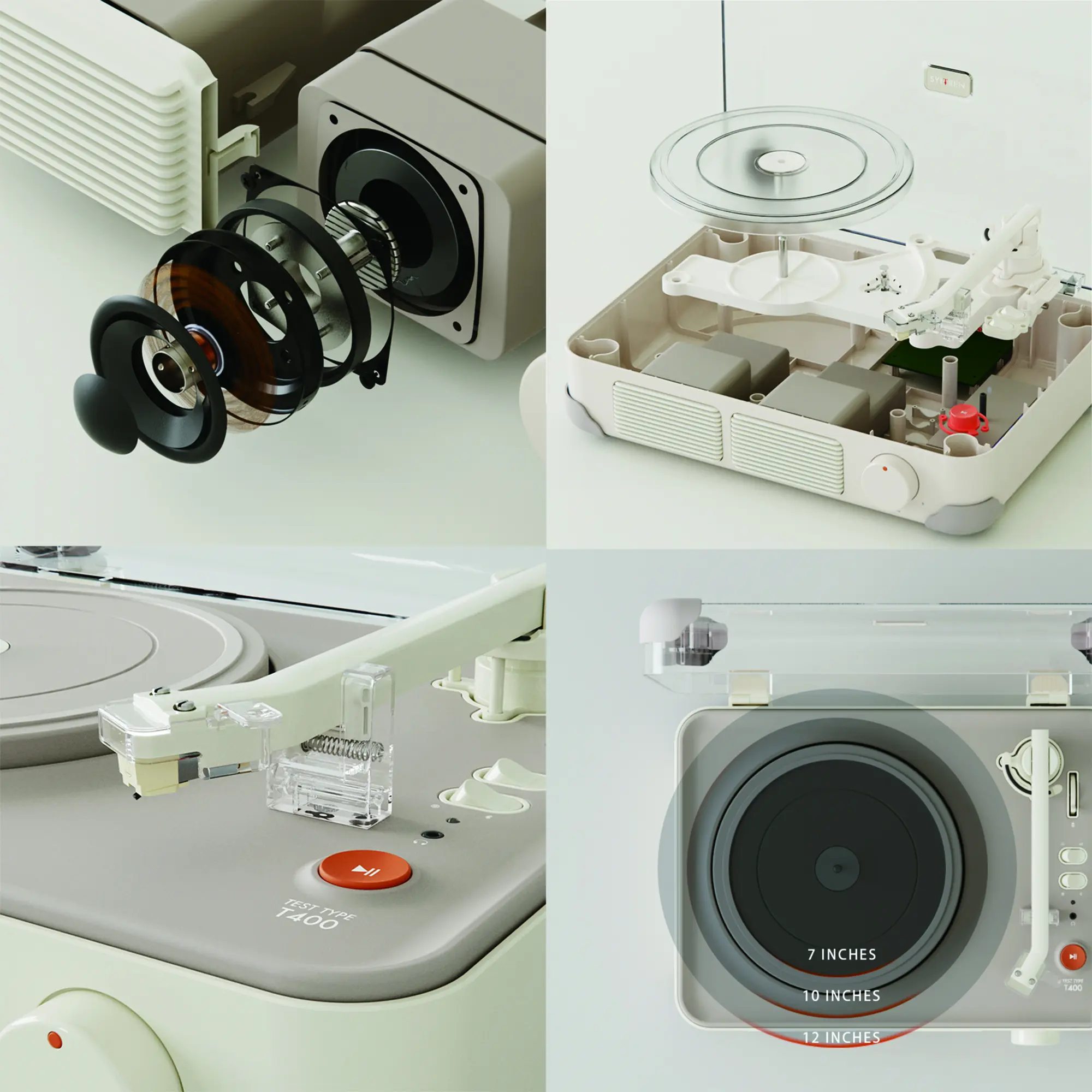 Since 2020, the vinyl record market has experienced a recovery, and Gen Z has become a loyal fan of it. However, there are very few vinyl record players, which inspired our design. T400 is a tribute to the classics and a development of the new era. The integrated design breaks away from the traditional wooden box design of vinyl record players. The simplified operation and hidden suspension shock absorption system greatly enhance the experience. Circular design concept makes it flexible, upgradeable, and repairable, which better fits the preferences of the new era enthusiasts.