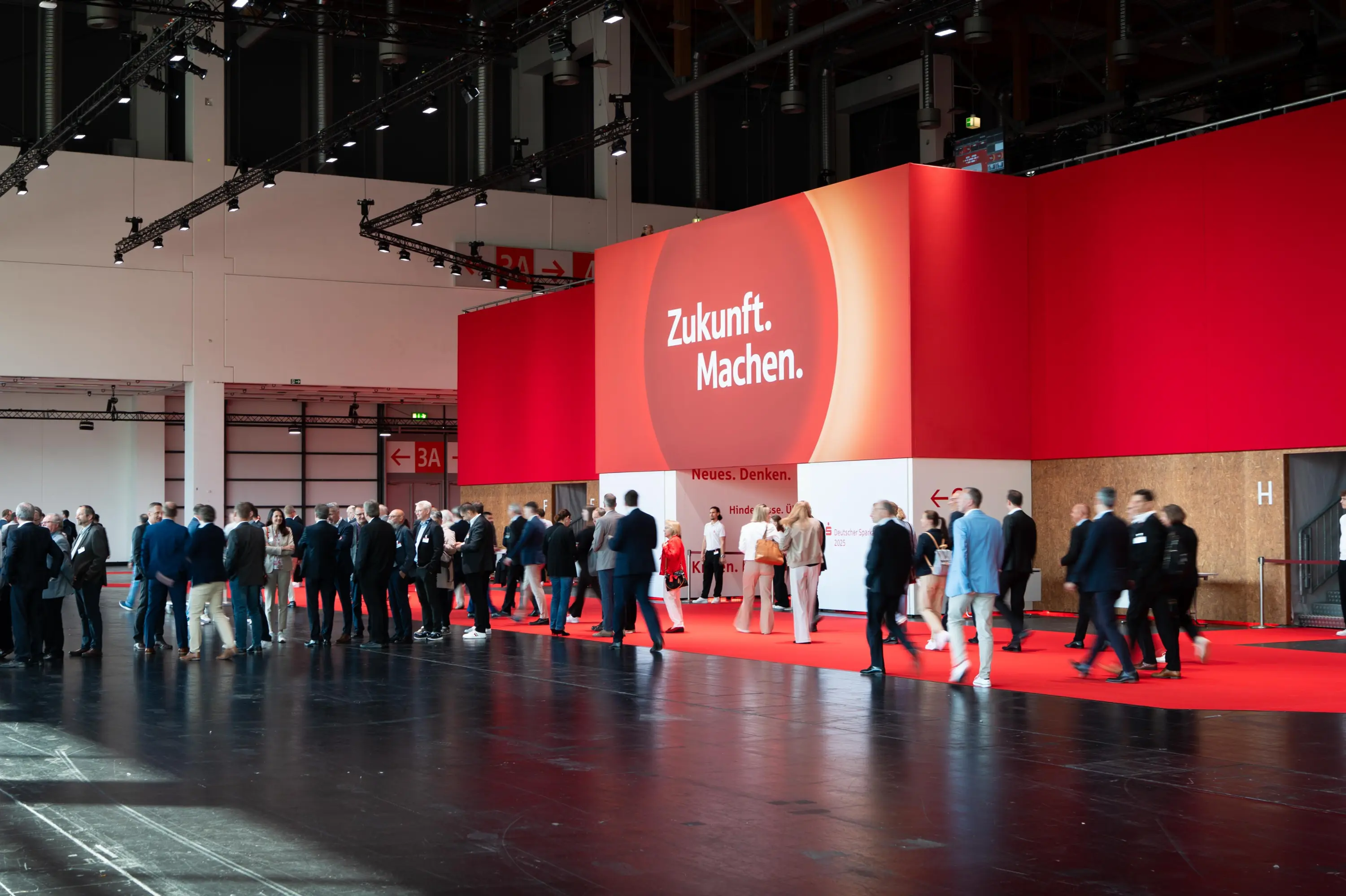 Under the motto “Zukunft. Machen.”, German Sparkassentag 2025 in Nuremberg presented a holistic spatial and experiential design. Stages, sets, exhibition spaces, and innovative event technology allowed versatile presentations for over 3,000 guests. Political keynotes and interactive innovation exhibits were effectively staged, creating a dynamic experiential environment that encouraged dialogue and interaction while powerfully reflecting the Sparkassen-Finanzgruppe’s brand identity.