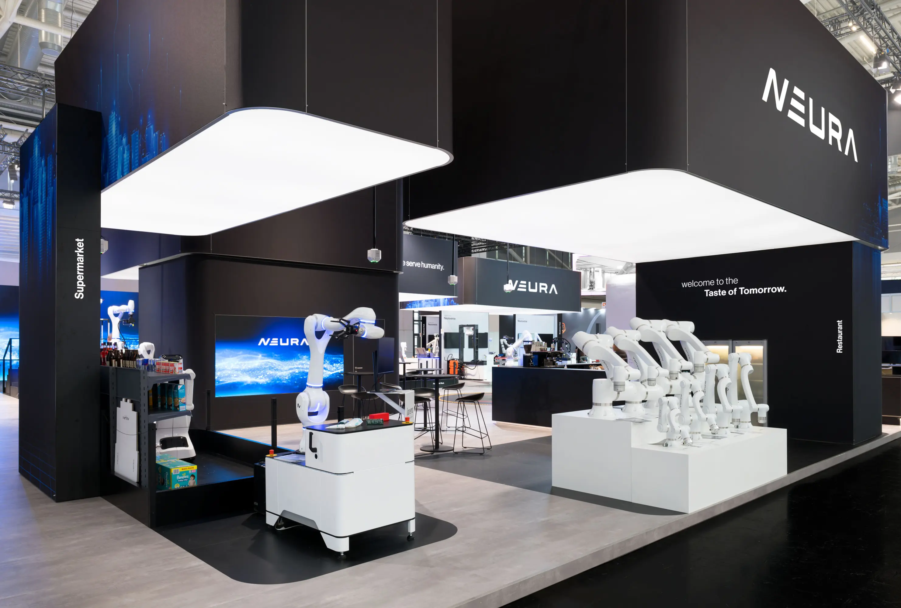 NEURA CITY translates the complex world of robotics and AI into an intuitive, emotional, and accessible experience. The city serves as a spatial metaphor that condenses technology, architecture, and engagement in a familiar setting. Visitors explore thematic worlds such as homes, hospitals, factories, supermarkets, or restaurants – places where robots are seamlessly integrated into human living environments. This encourages new forms of coexistence and collaboration between products and viewers. The design combines technological precision with emotional accessibility, making a cooperative future between humans and machines feel tangible.
