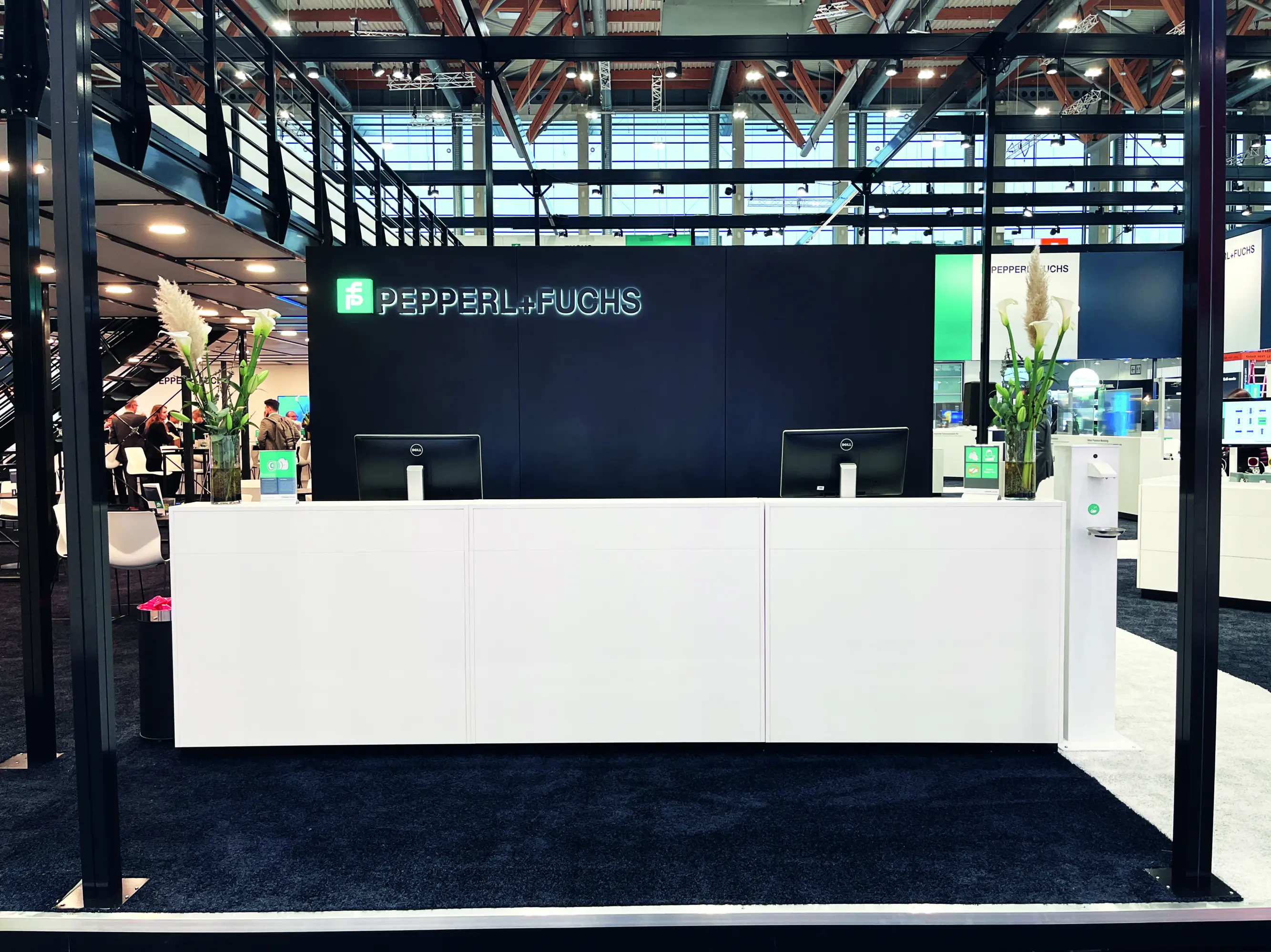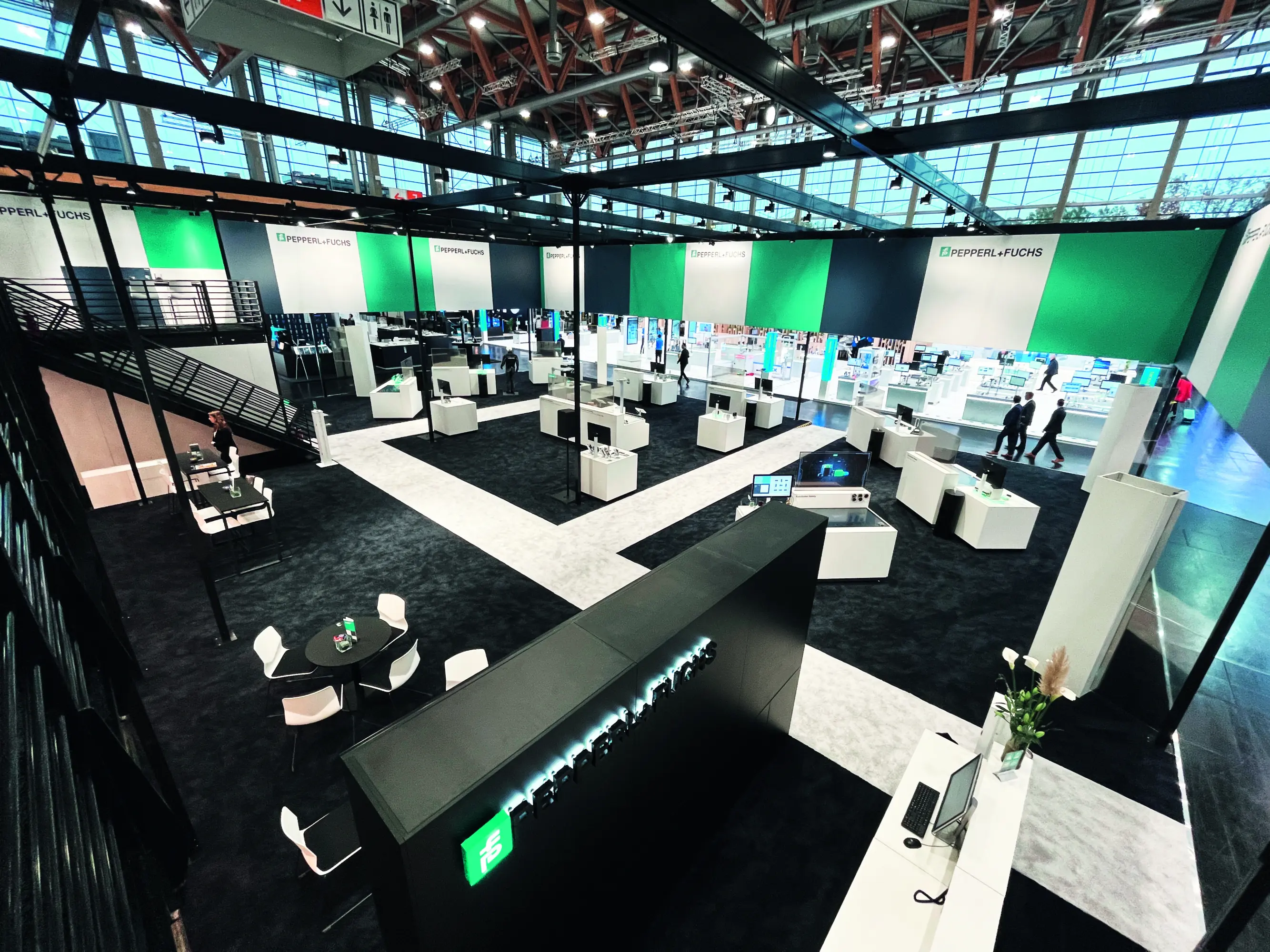 The Pepperl+Fuchs exhibition stand at SPS 2022 sets new standards in circular exhibition stand construction. The modular concept is based on durable Octanorm systems made of secondary aluminium, cradle-to-cradle-certified carpet and reusable wall coverings. Over 90 % of the elements are stored and reused multiple times. Modular exhibits, energy-saving LED technology, and efficient transport solutions minimise resource consumption. The result is a flexible, repair-friendly, and sustainable stand concept for long-term use without a throwaway mentality.