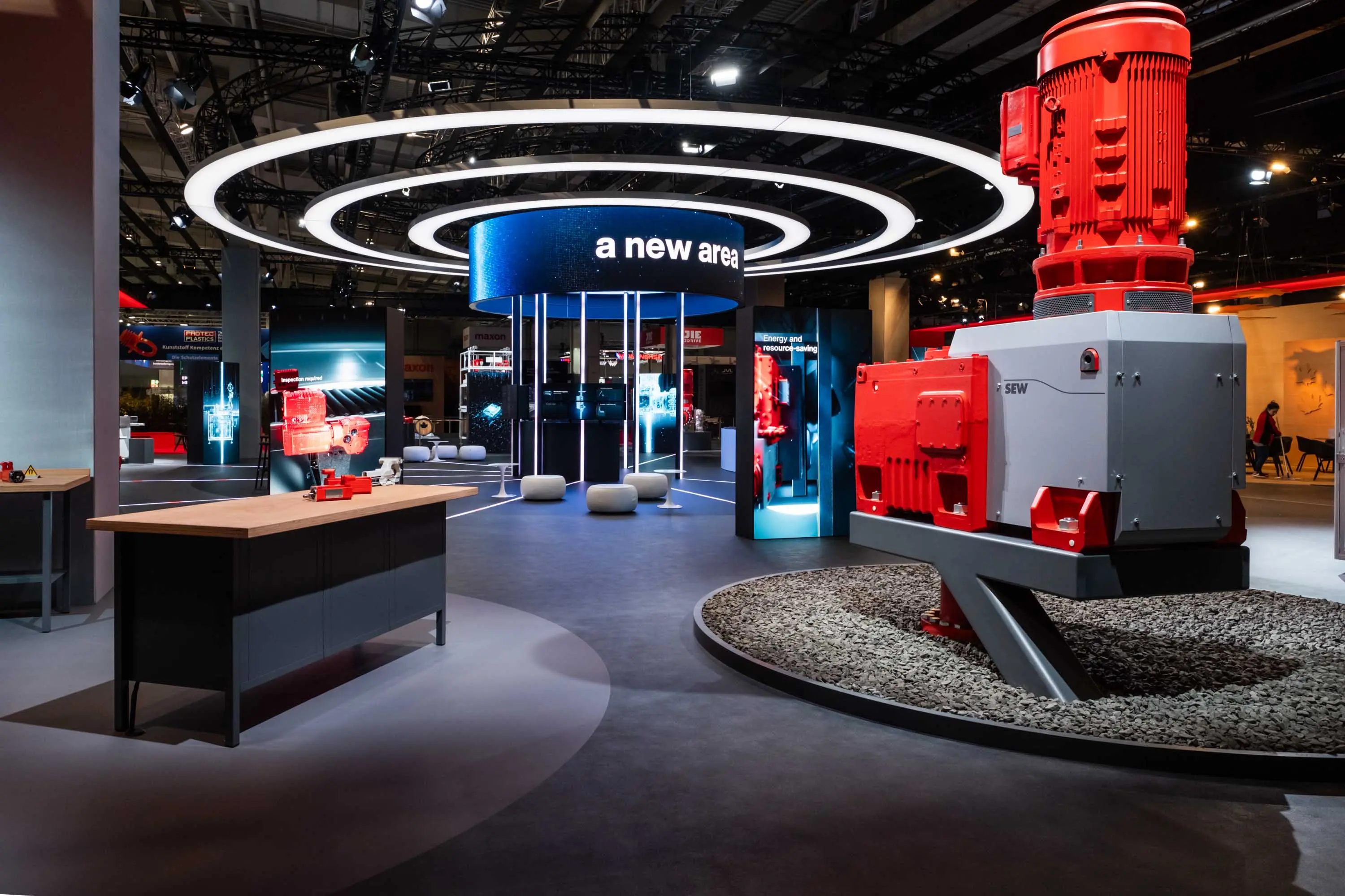 At Hannover Messe 2025, SEW-EURODRIVE demonstrates how the future of sustainable industrial production, driven by digitalisation and AI, is already taking shape. Under the motto SUSTAINABLE THINKING. DIGITAL ACTING. the stand becomes an immersive experience of connected processes. At its centre: Orion, a light-animated sculpture with a digital control hub. Radially arranged “planets” showcase applications for various industries, digitally linked through light impulses. A precise choreography of light, image, sound and interaction creates a holistic installation, extended to social media, with results exceeding all targets.