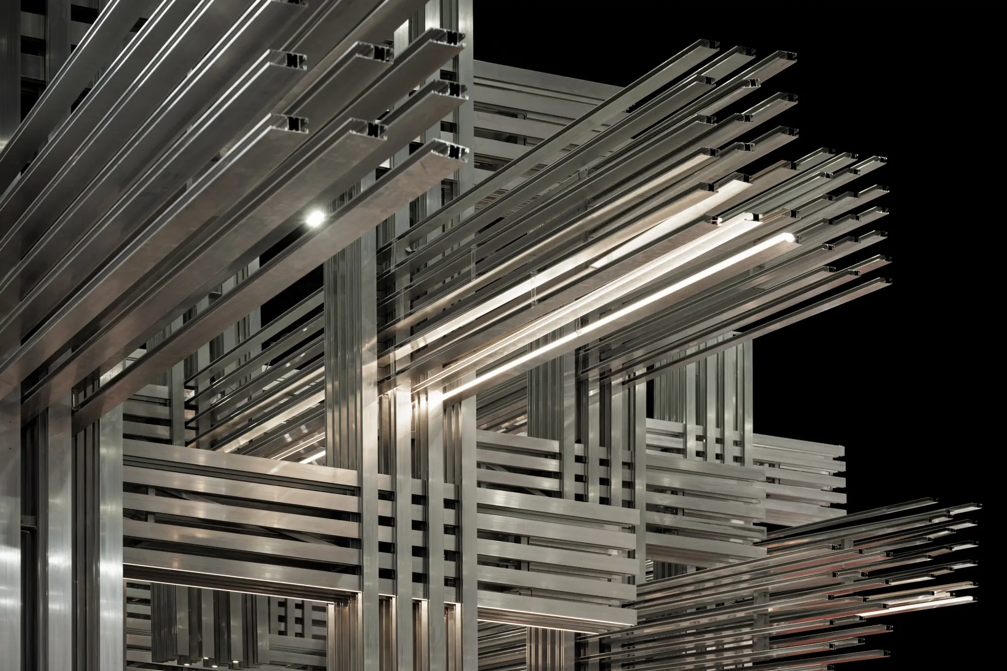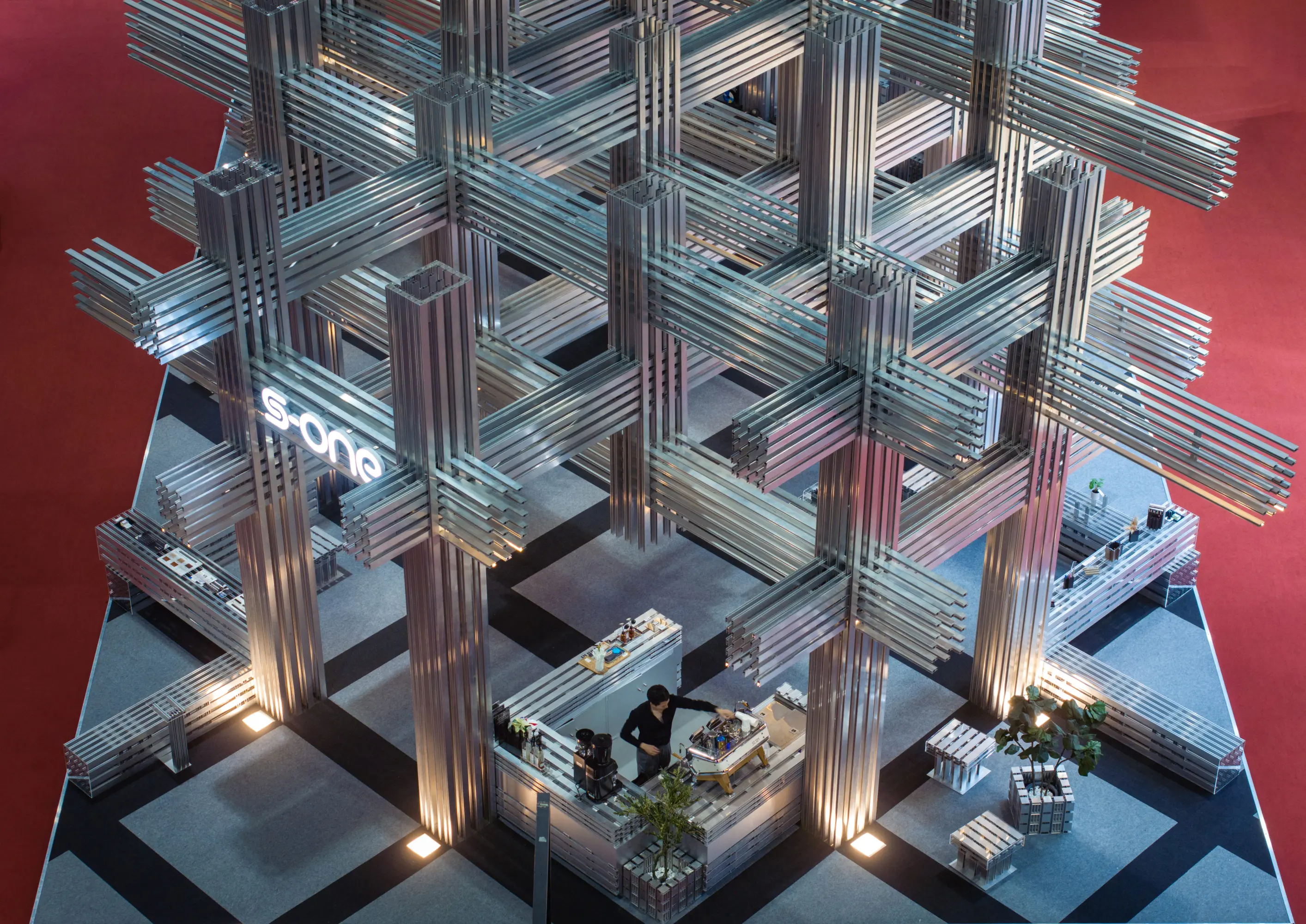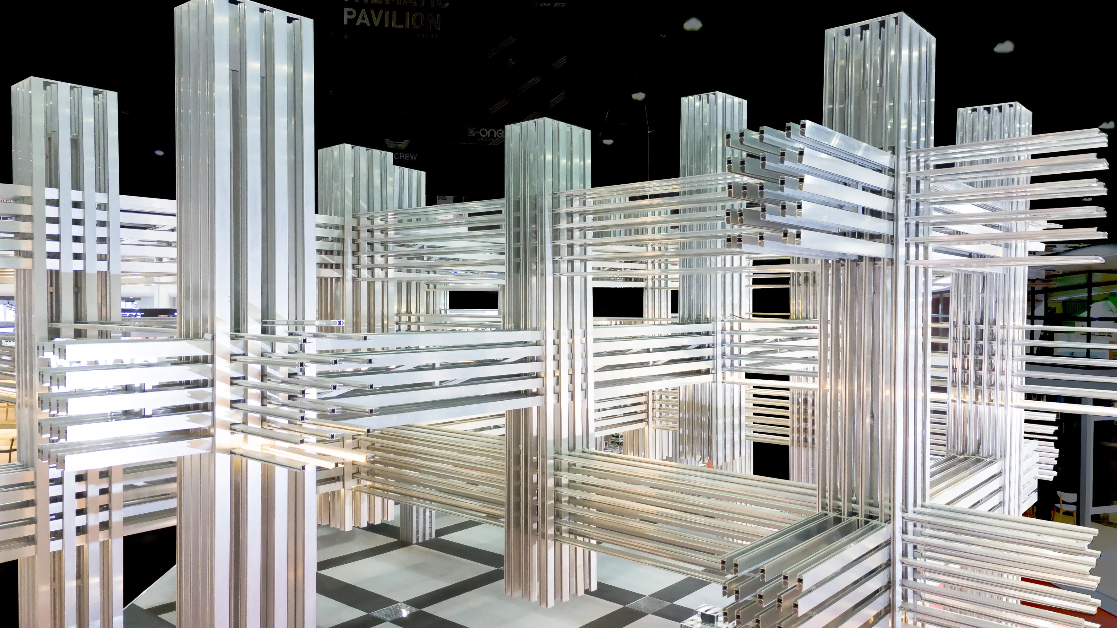 S-ONE commissioned Looklen Architects to design a pavilion for ASA Expo Thailand 2025, with a focus on reducing waste from temporary installations. The design employs full-length 6.35-meter mil-finished aluminium members, interwoven without cutting or drilling, to preserve material quality and promote reuse. This modular approach enables easy assembly and disassembly, offering a tangible expression of sustainable design.