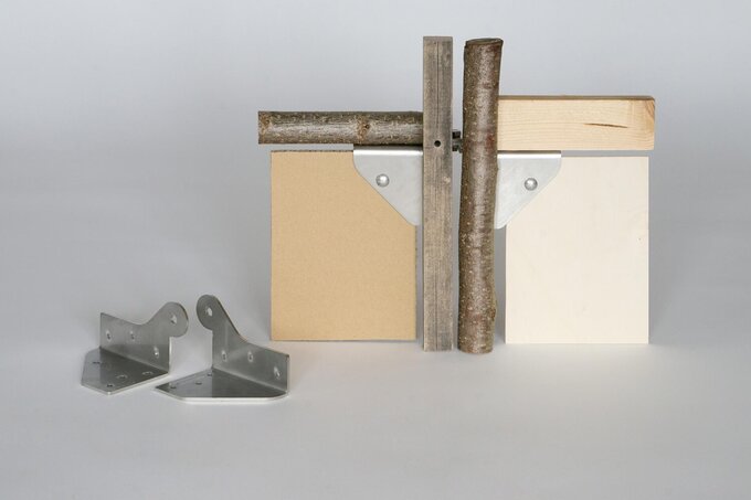 The Zero Waste Connection is a specially designed corner joint for exhibitions and participation formats. It is produced without any waste and allows recycling materials to be easily combined in a flexible exhibition system. The focus of the concept is on participation. Upcycling is fun! The Zero Waste Connection makes it easy for anyone to bring their materials together. Whether it's battens, branches, boards, pipes, cardboard, ropes, fabrics, or tarps, the connection enables variously sized and flexible display systems.