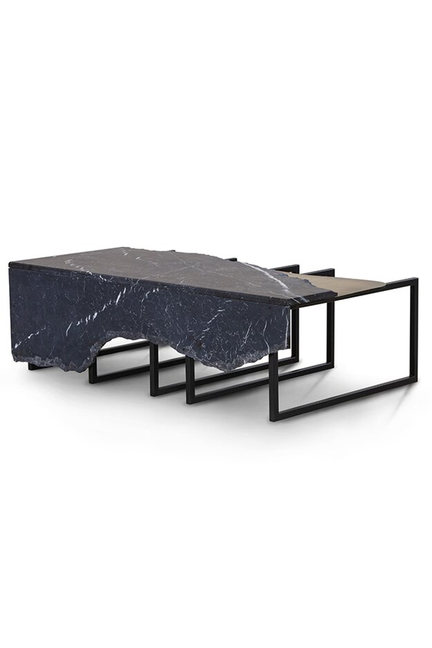 The Aire coffee table, designed by Rute Martins, features a bold and distinctive design, seamlessly complementing contemporary spaces. Its irregular and organic aesthetic, inspired by the captivating Grutas de Mira de Aire, redefines concepts of sophistication. Crafted from exquisite materials, this marble coffee table easily becomes the centrepiece of today’s living interiors, capturing attention from the first encounter. The choice of high-quality materials, including Nero Marquina marble and dark oxidised brass, is highlighted by the finest craftsmanship that our artisans put into their handcrafted work.