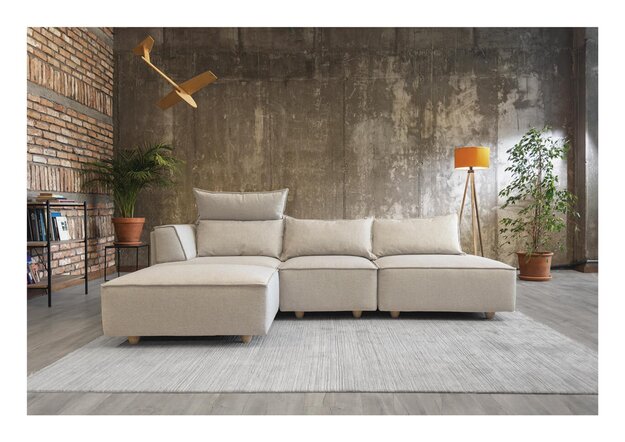 The Cascais sofa system redefines the concept of modular sofas by expanding on standard transformation possibilities. Not only can it be arranged into different configurations for various occasions, it can also transform vertically through the addition of supports, backrests, cushions, headrests, and a choice of different leg heights. For example, the configuration with a spacious 3.4m² seating area can be packed in only 1.5m³ of space. Starting as a classic corner set with washable and exchangeable covers, the sofa can be transformed into a three-seater with two armchairs, twin beds, and even a double bed.