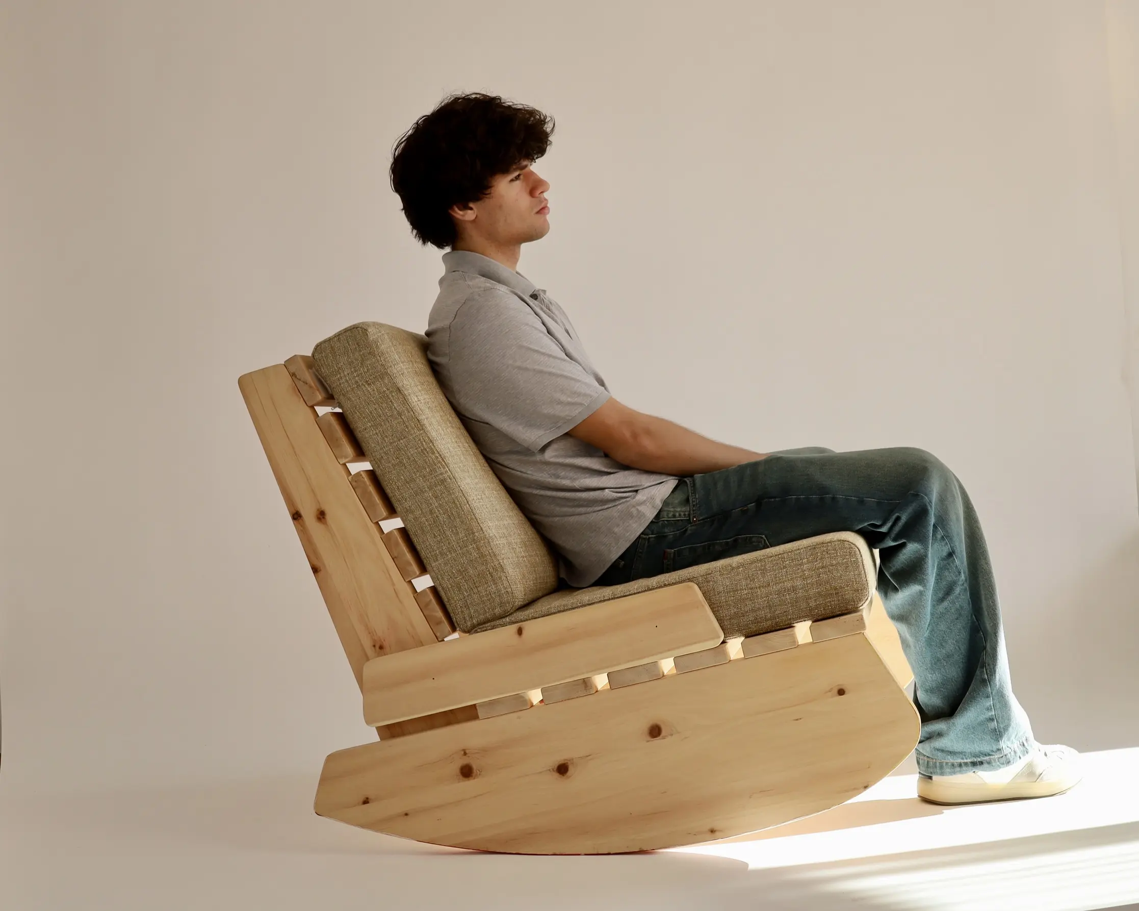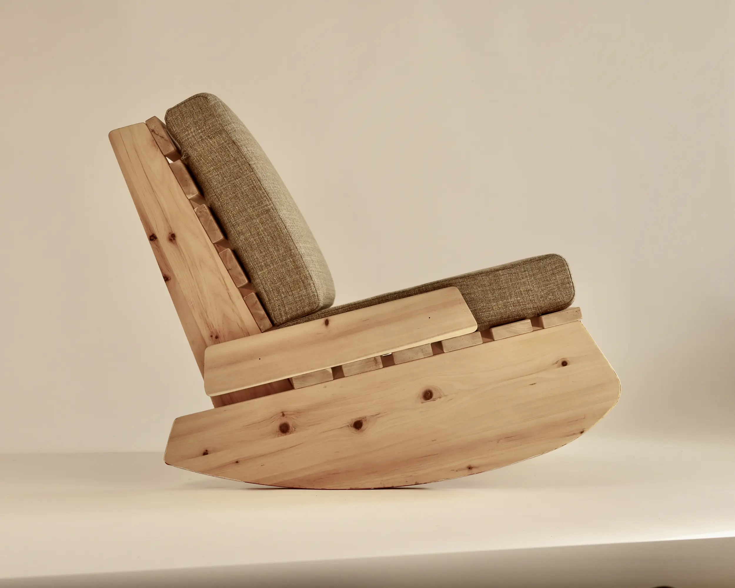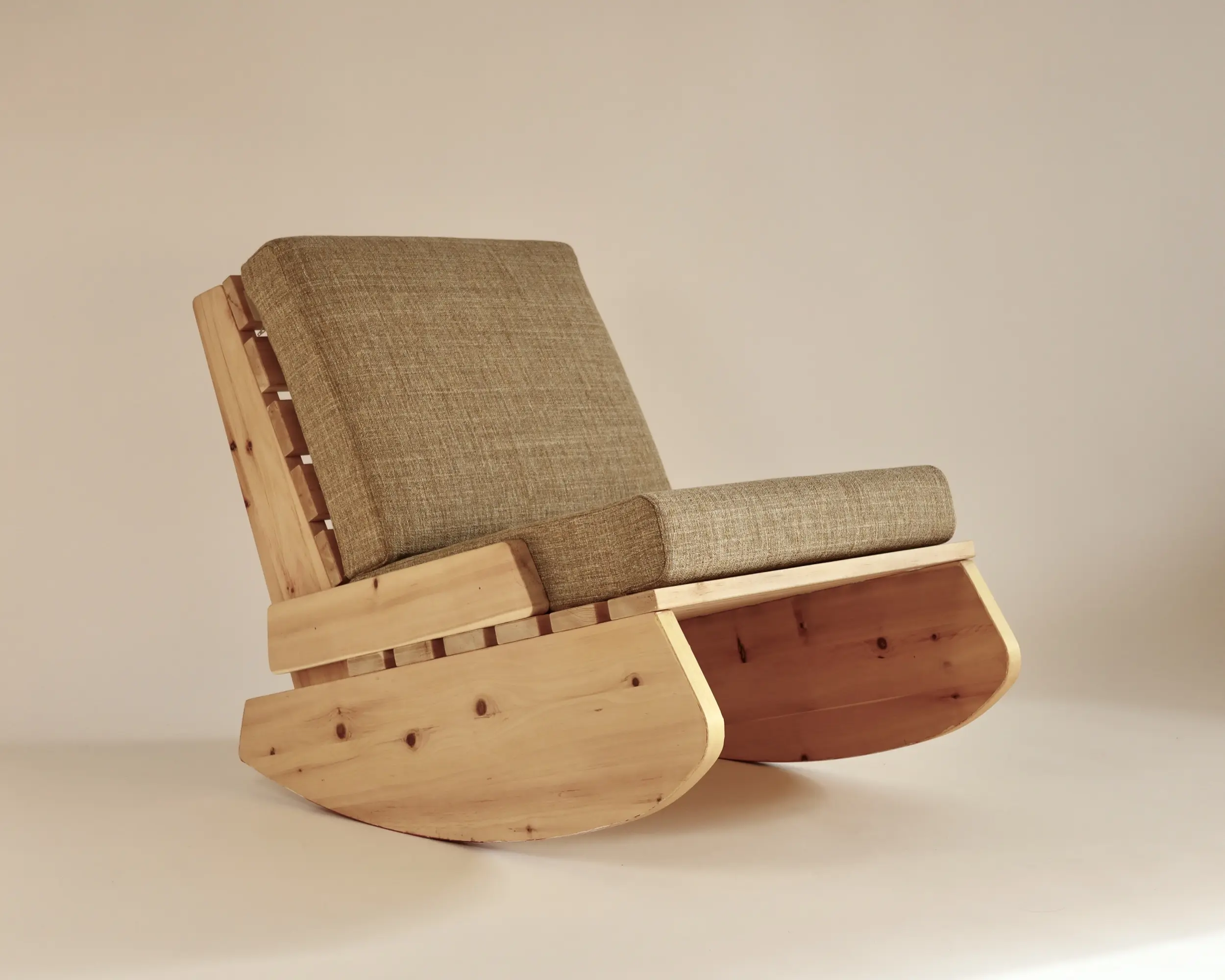 The Catamaran embodies a balance of contemporary design and thoughtful craftsmanship. Its minimalist geometric form is made from solid Alpine pine wood, complemented by textile cushions in modern colours. The chair consists of two parts, making it easy to transport and assemble. Beyond aesthetics and comfort, the chair reflects our core design philosophy: we aim to create furniture easy to manufacture in almost any workshop, using minimal processing and only ecological materials. We incorporate wood remnants, giving them a second life as furniture. We transform waste into functional design pieces to serve interior vision and sustainability.