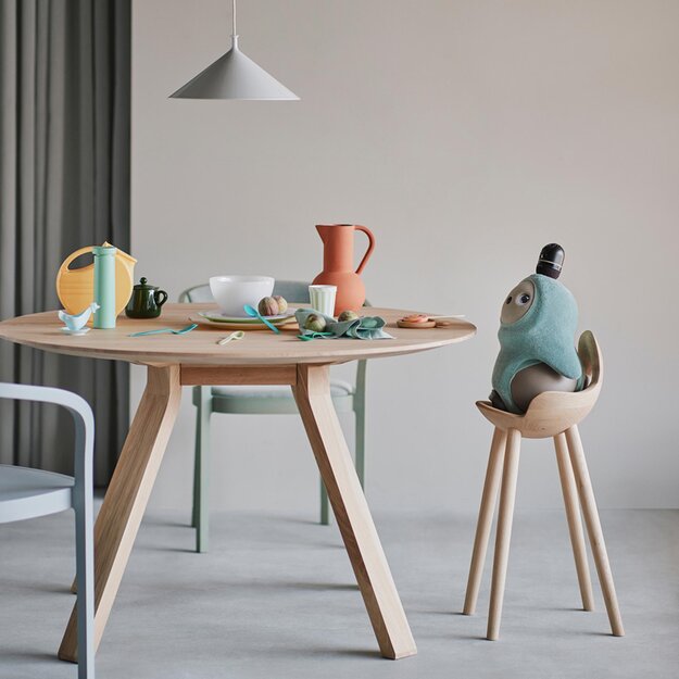 We designed a chair exclusively for LOVOT, the family type robot. No one has ever designed wooden furniture for robots in the context of living together with humans. The shell is crafted to a soft, enveloping shape to match the robot’s spherical outline. The hole on the backrest allows heat dissipation from the robot’s tail, contributing to the chair’s iconic look. Although the meticulous design process has been similar to how one might design chairs for humans, the difference between robots and humans resulted in a distinctive style that sets LOVOT CHAIR apart from human chairs.