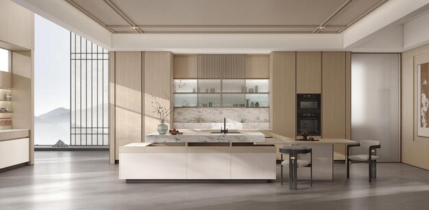 The main ideological resource of Song Dynasty aesthetics is the philosophy of poetics, which advocates the poetization of life, living a poetic and elegant life in a poetic life, allowing people to find inner tranquillity and peace in their busy lives, burning incense and ordering tea, stroking the guqin and watching paintings, tasting tea and drinking, and experiencing a Song-style elegant gathering. With light and elegant tones, the use of sky blue valley lacquer and elegant light wood colours create a serene and tranquil atmosphere.