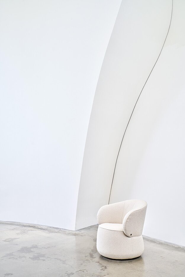 INSPIRED BY COMFORT AND COSINESS. Soft biomorphic shapes, a design that symbolises comfort and soft upholstery - these features combine to create an archetype of comfort, warmth and open arms. The sculptural design works with the tectonics of shapes to create an indoor seating piece that is both visually appealing and comfortable to sit on. The shape of the base harmoniously emphasises the natural movements of the seated person and the motif of softness.