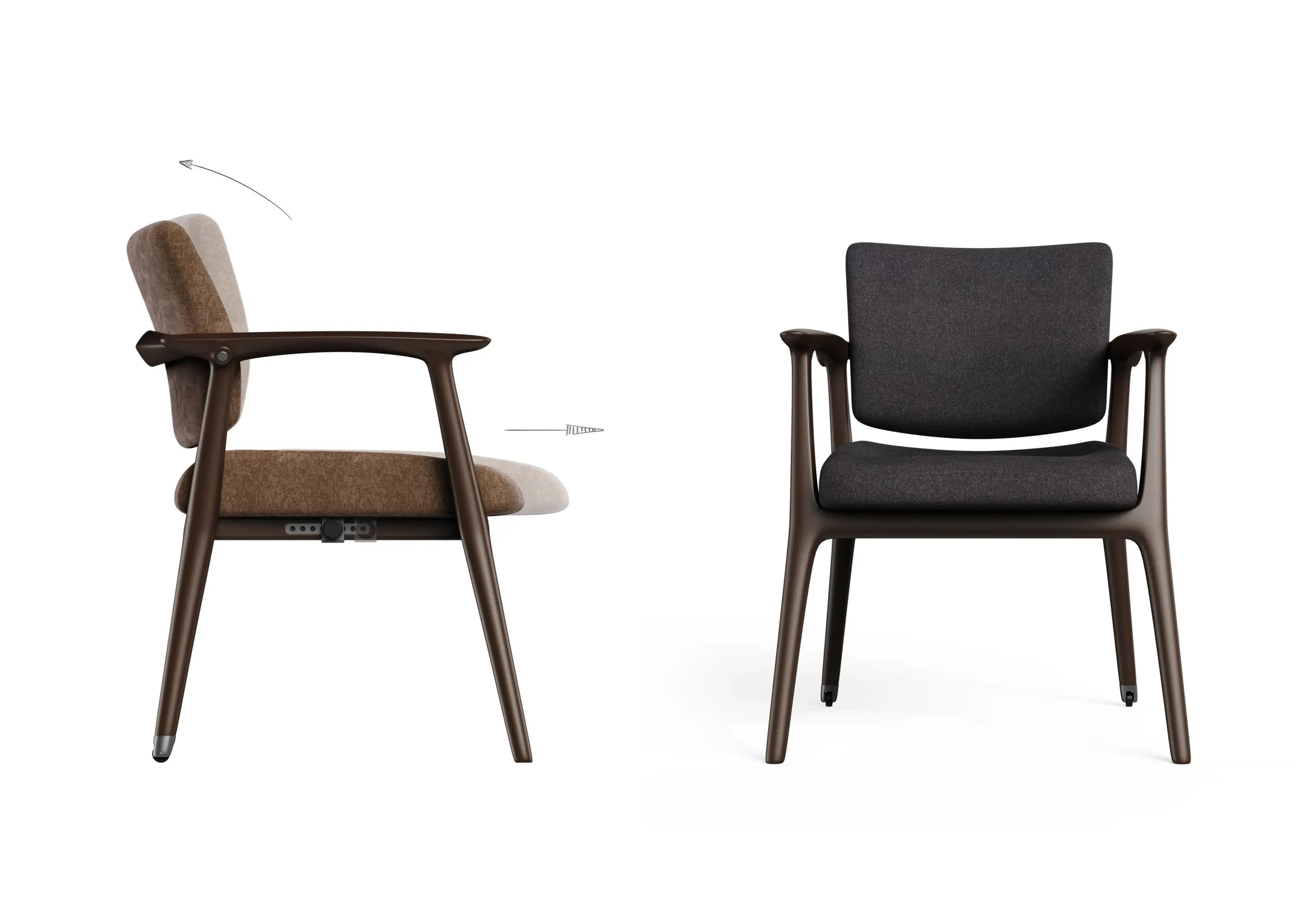 Phytal offers elderly users a comfortable and safe seating experience with thoughtful age-friendly designs. The chair features adjustable backrest angles and seat depth, flexibly adapting to different body shapes and postures. The backrest and seat cushion are made from high-density memory foam using an integrated molding process. Its ergonomic design naturally conforms to the body’s contours. Rear casters enable easy mobility and forward-extending armrests provide great support for standing up.