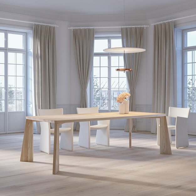 Assertive presence. The table embodies a modern and contemporary aesthetic, characterised by clear lines and innovative design elements. PYLON is characterised by its frameless structure, which creates a seamless and airy impression. The striking legs of the PYLON table are an iconic feature that gives the piece of furniture its unique identity. The wide downward taper gives the table a solid base and at the same time emphasises the modern elegance of the overall concept.