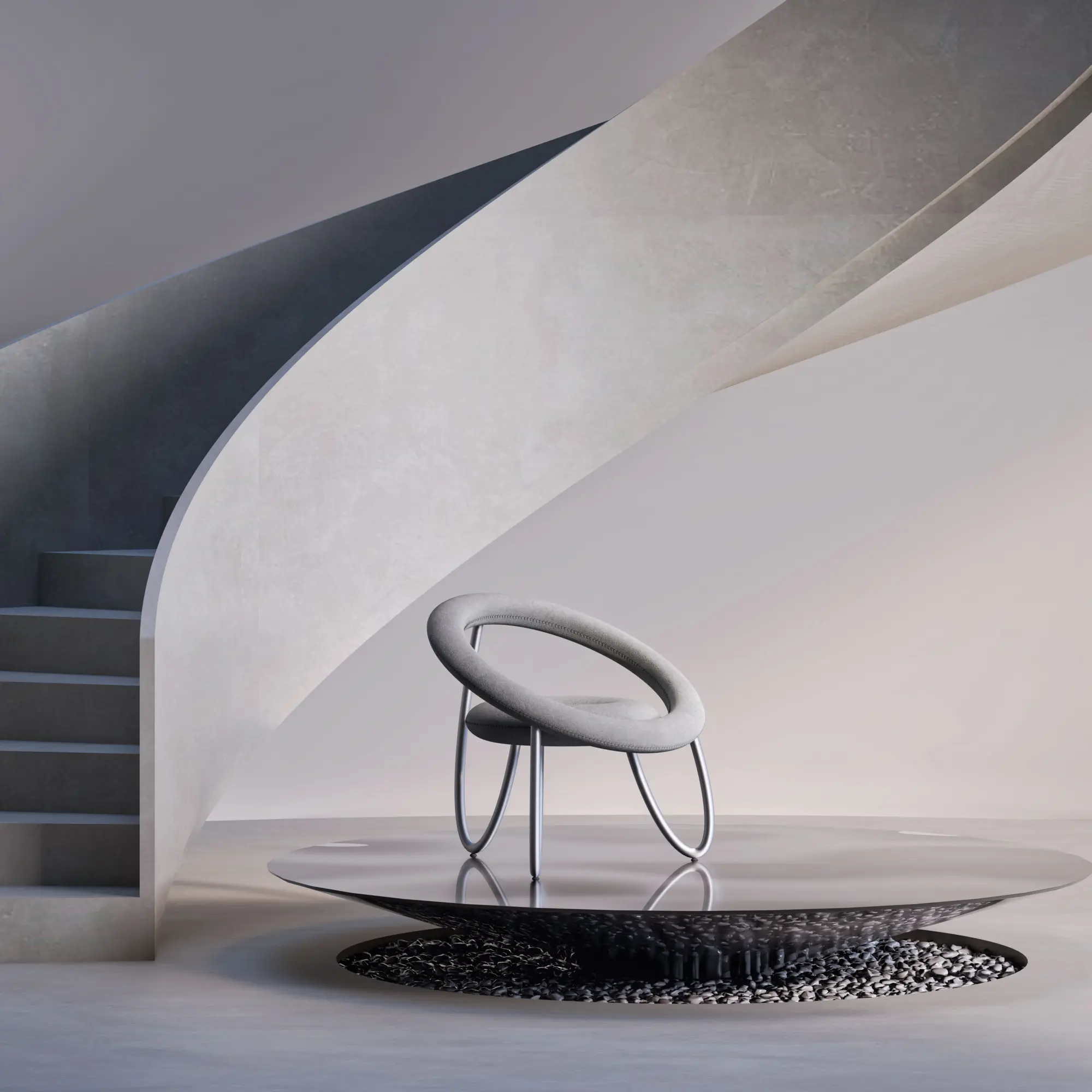 Drawing on the orbit motions of planetary rings, the product forms its overall structure with minimalist circular rings. The circular backrest integrates armrests to create an elegant angle with the seat, which artistically references the shape of celestial bodies and delivers a unique, enveloping “floating” seating experience, as if resting among the stars, showing the harmony between humans and the universe. The tubular frame adds visual lightness, further reinforcing the planetary ring motif.