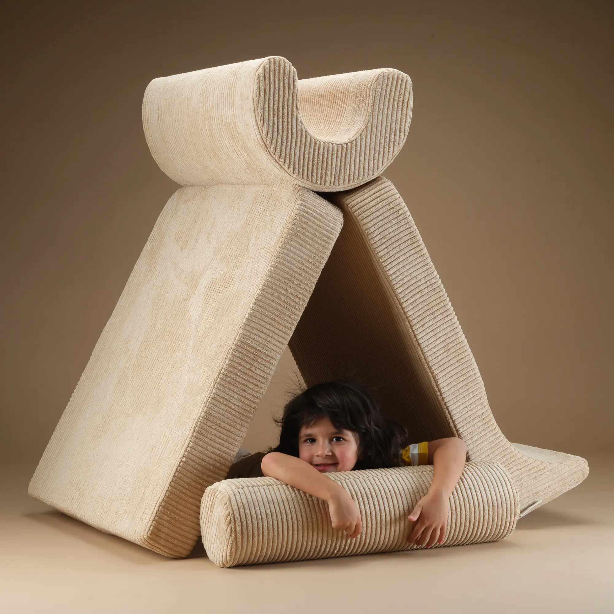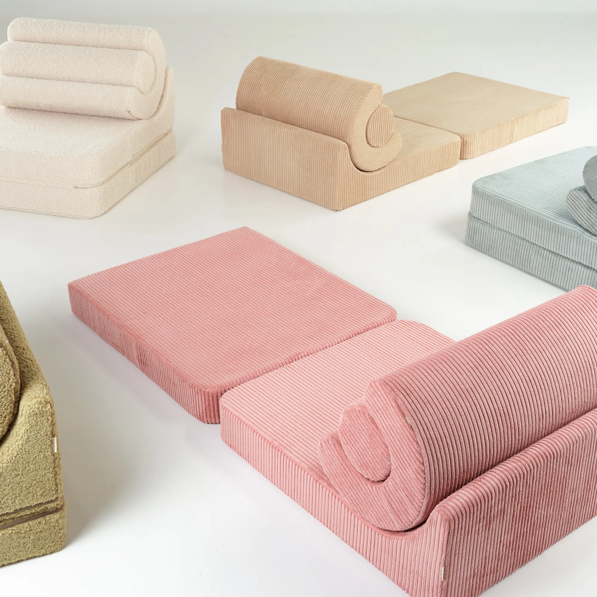 Flipster is a multifunctional modular soft chair inspired by Bauhaus aesthetics, designed to fit any modern interior. It easily transforms from chair to bed or play area, encouraging children to explore and create, thus supporting early cognitive and emotional growth. Suitable for both kids and adults. Handmade in Latvia, it features durable high-density foam base and removable washable covers from OEKO-TEX® and GRS® certified and hypoallergenic fabrics. Available in 7 colours, Flipster combines comfort, elegance, and helps cultivate good taste from a young age.