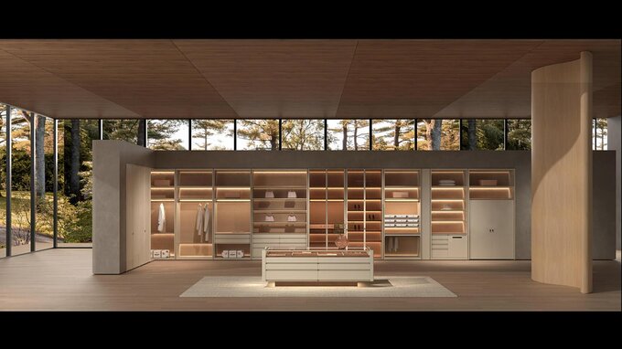 The interior architecture for kitchens captivates with its harmonious integration of natural forms and colors, inspired by landscapes of valleys and mountains. The flowing lines and warm gray tones create an elegant and luxurious atmosphere that is both functional and aesthetically pleasing.