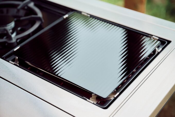 Innovation in glass: The world first Blazinglas® combines simplicity, practicality and know-how. The infrared-permeable glass allows grilling at temperatures up to 900 °C for caramelised grilled food and unique brandings without food becoming dry or grease fire. The Blazinglas® is available in various sizes and is compatible with most infrared burners. It is easy to handle and uncomplicated to clean. A design coup that perfectly combines form and function in the area of barbecue cuisine.