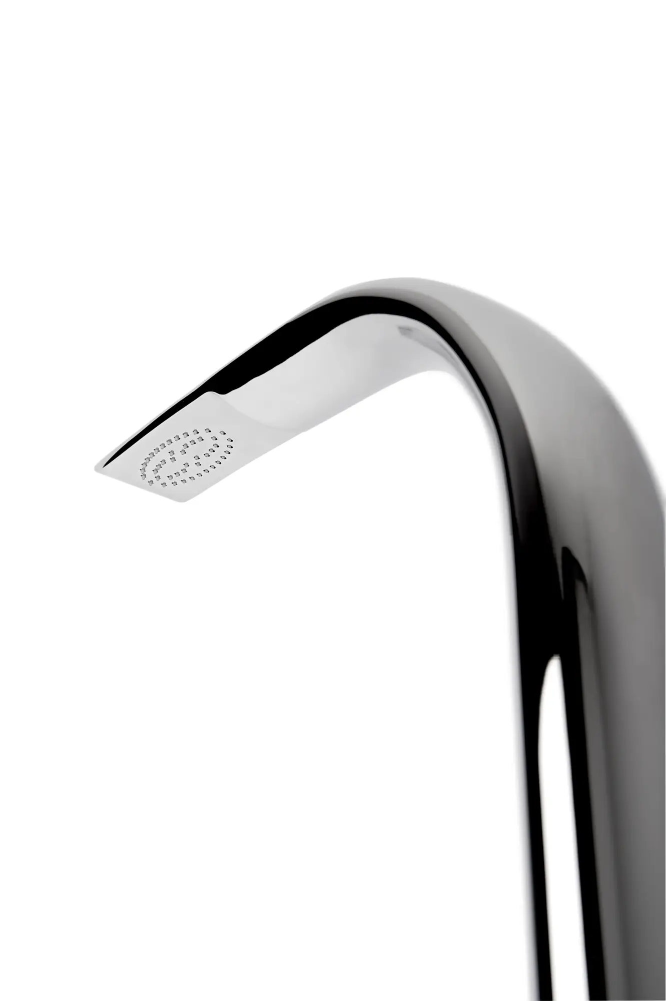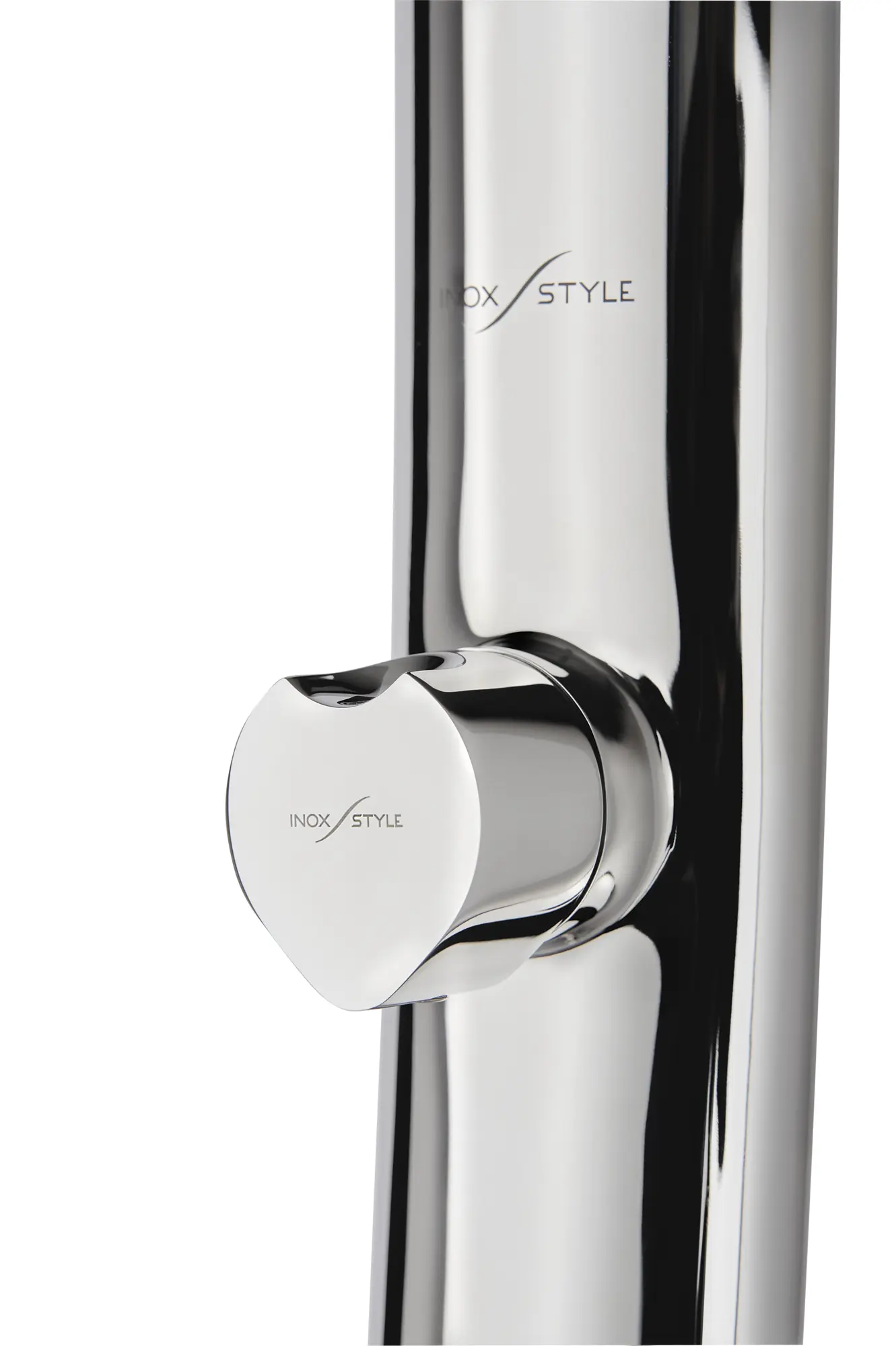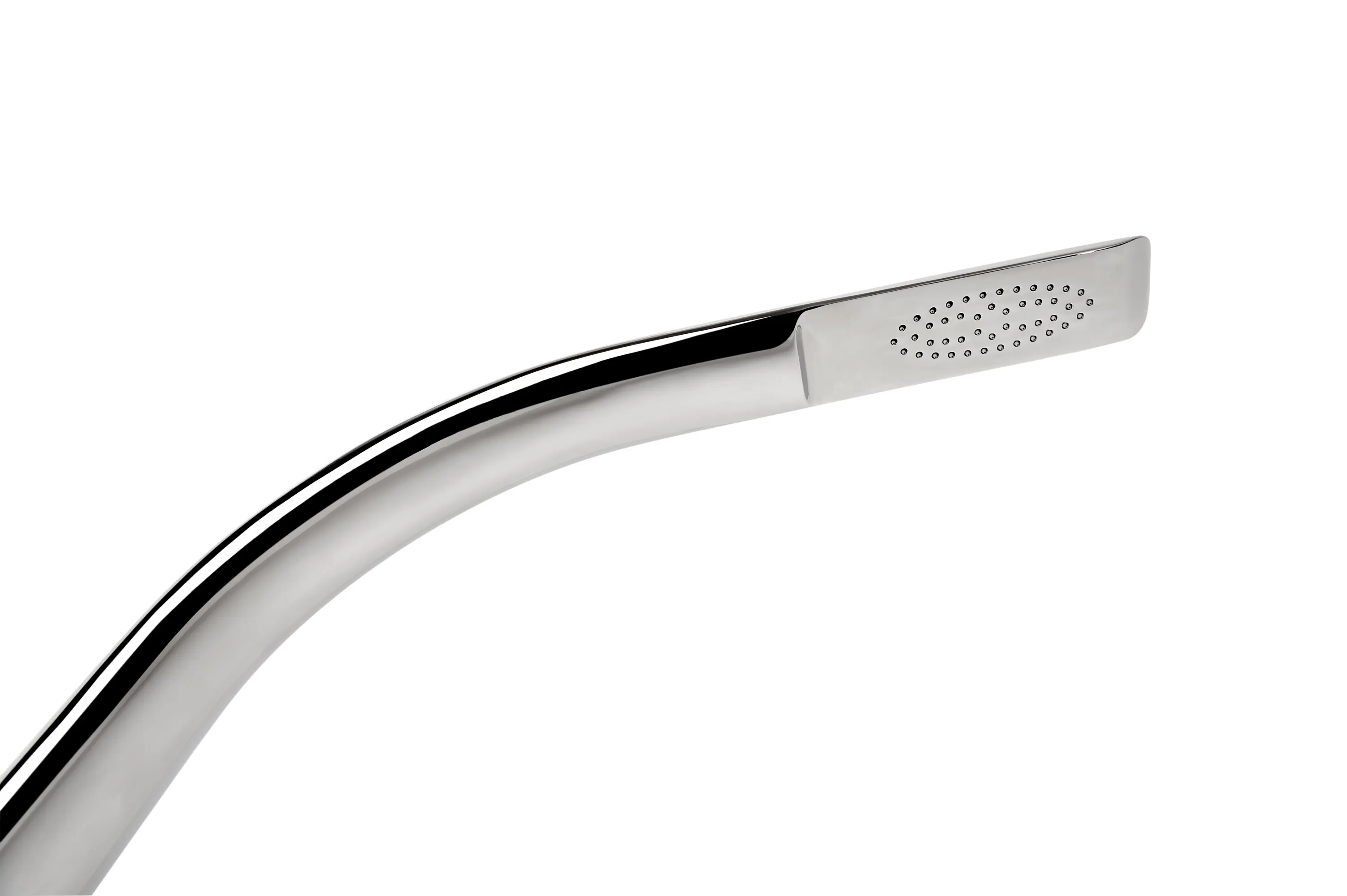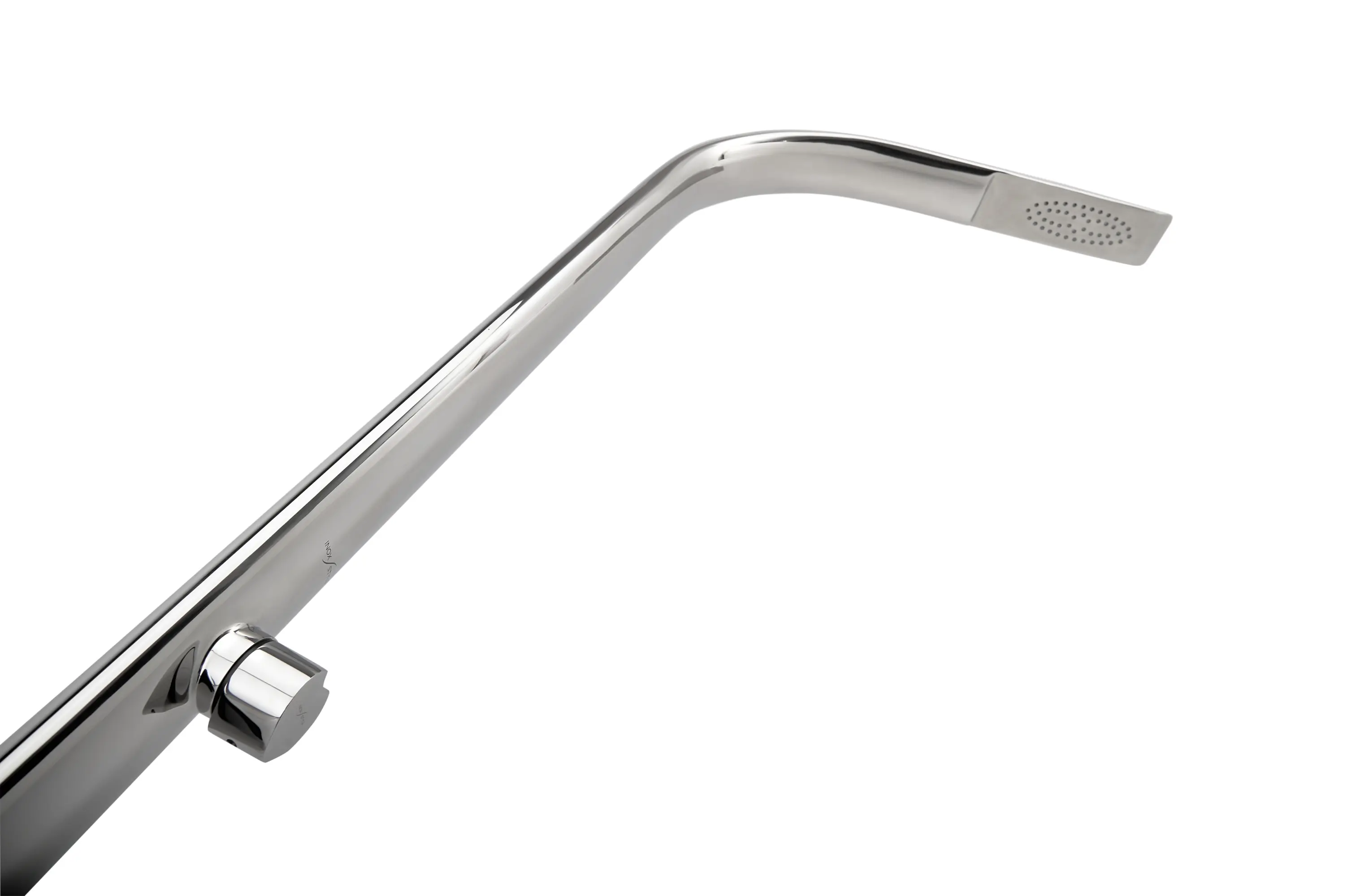 The Ellipse-DU shower is a refined design object for yachts, made from AISI 316L marine stainless steel, chosen for its superior resistance to corrosion. Its elegant elliptical profile gives it a distinctive aesthetic, combining form and function in a sleek silhouette that enhances the visual harmony of the deck. Removable when not in use or during navigation, it remains protected in harsh conditions. Installation is clean and hidden, with a quick-connect system. The stainless steel control ensures intuitive use, while silicone nozzles preserve both performance and appearance by resisting limescale.