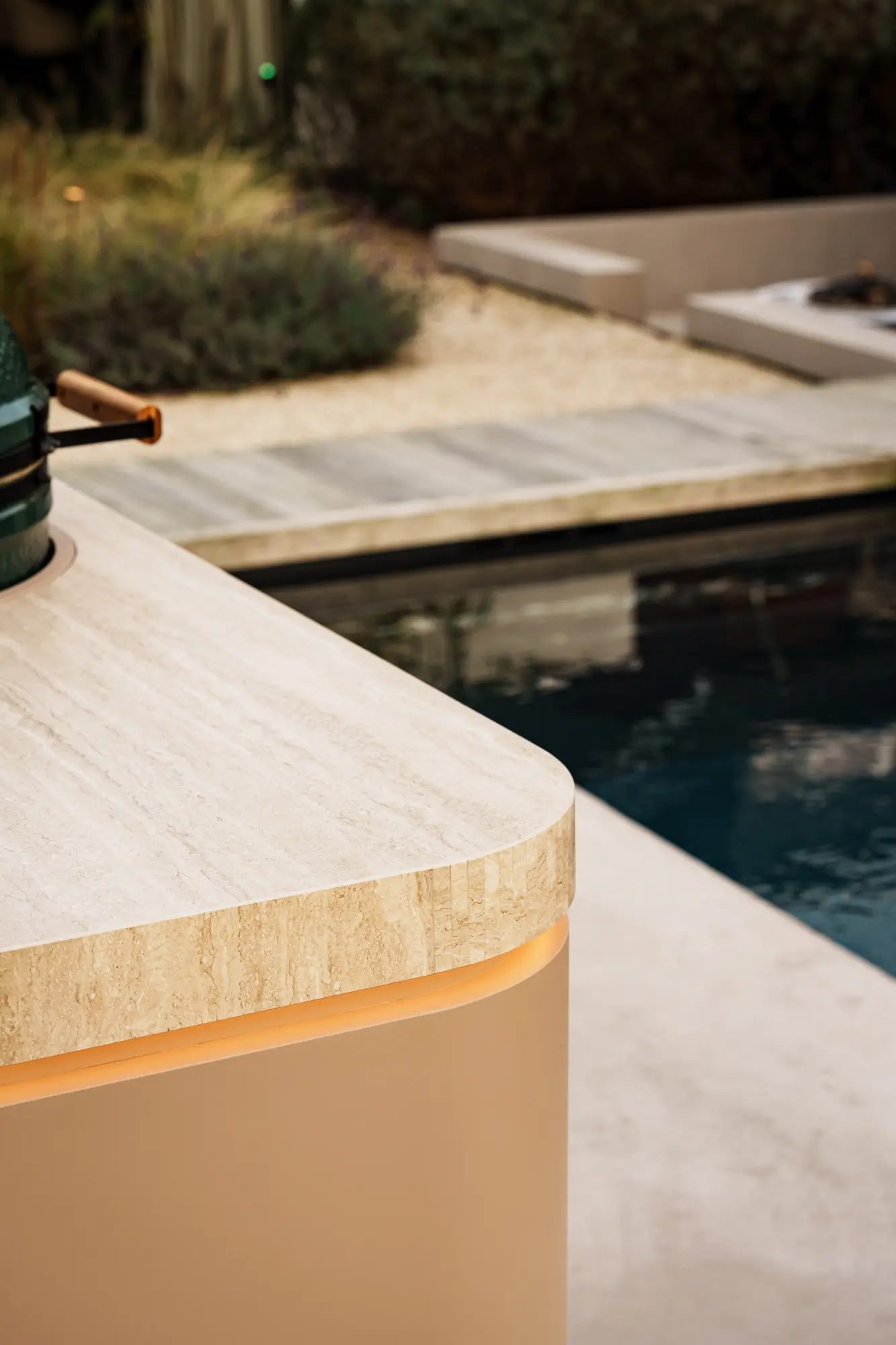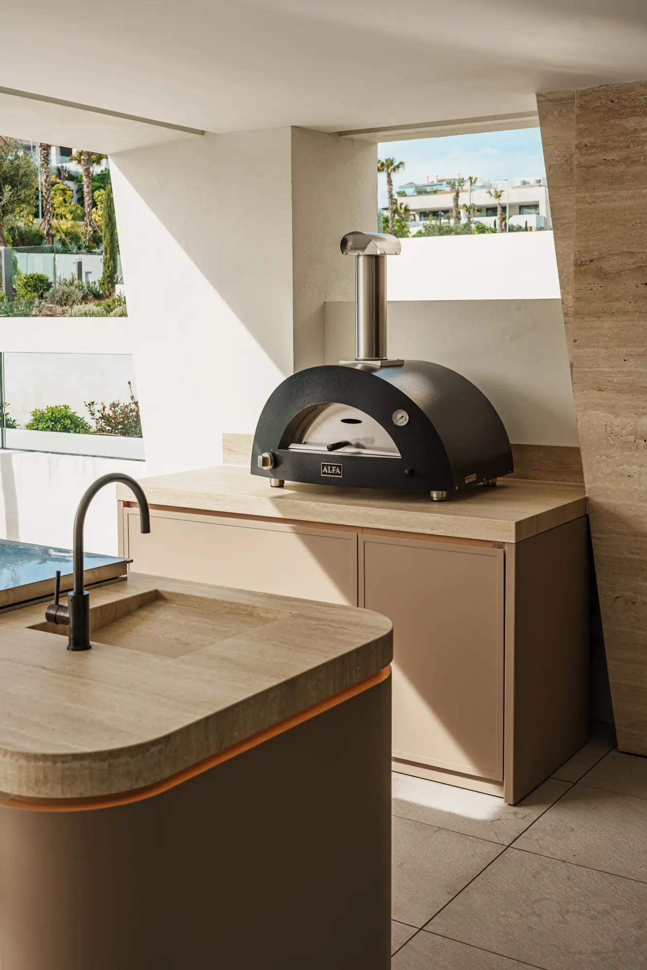 LUSSO Outdoor presents an exclusive collection of outdoor kitchens that go beyond being just cooking spaces—they create a complete outdoor cooking experience where design meets functionality. Built with a modular system featuring cabinets in 60, 90, and 120 cm sizes and a choice of curved or straight side panels, each kitchen can be tailored precisely to meet individual needs. From wine coolers to high-end barbecues and pizza ovens, these kitchens offer endless customization options for a fully personalized setup.