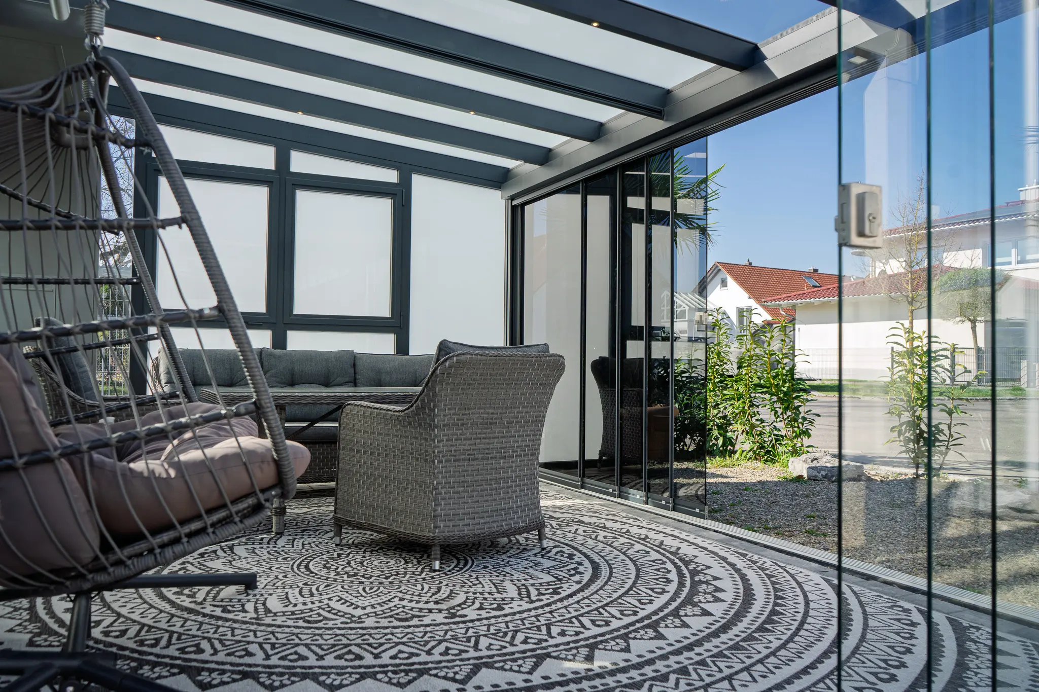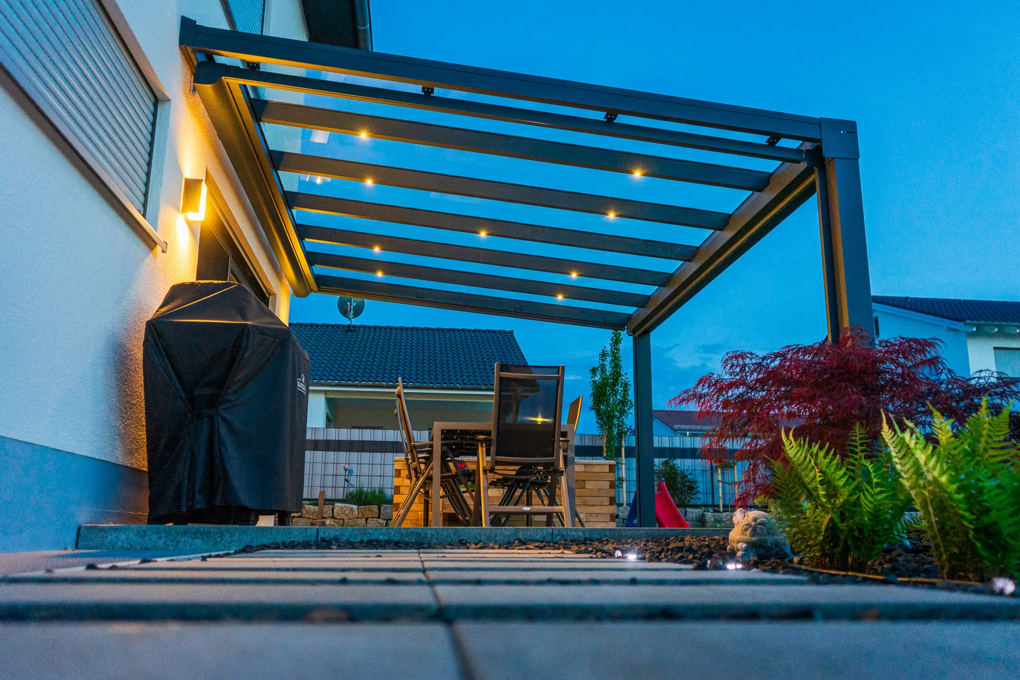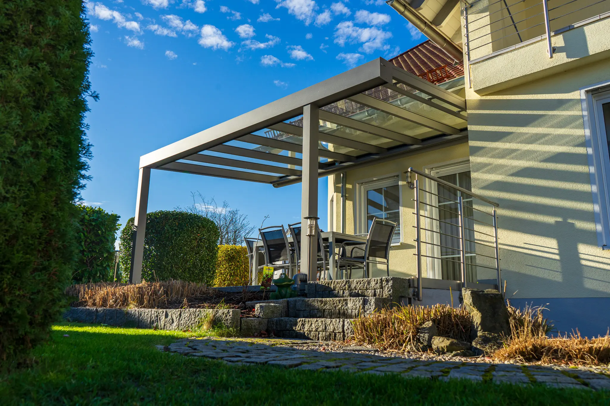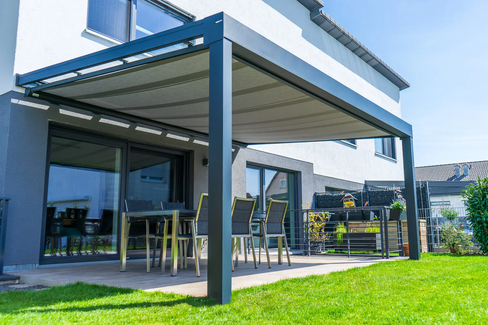 TIROL sets new benchmarks in terrace roof design: With up to 25% more load capacity than comparable systems, extra-wide post spacing up to 600 cm, 4 mm thick aluminium, and an innovative double-chamber system, it ensures maximum stability. The timeless, modern structure can be seamlessly extended at any time thanks to a new offset system – while maintaining a consistent passage height. Developed with customers, designers, and engineers, with a focus on long-term safety in all weather conditions.