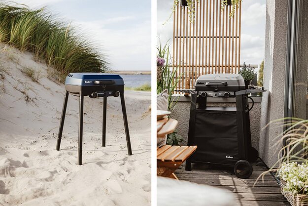 The Urban II and Explorer II barbecues combine innovative functions and modern design and are suitable for balconies and camping. Both models offer grills with flame covers, removable grease drip trays and improved cooking chambers for easy cleaning. The Urban II has grates that can be used on both sides and stable side tables, ideal for mobile grilling, cooking and baking. The Explorer II scores points with its plug-in legs and compact design. The optional trolley for the Urban II enables a comfortable working height and offers practical storage space. Both barbecues can be operated flexibly with a gas cylinder or screw-in cartridge.