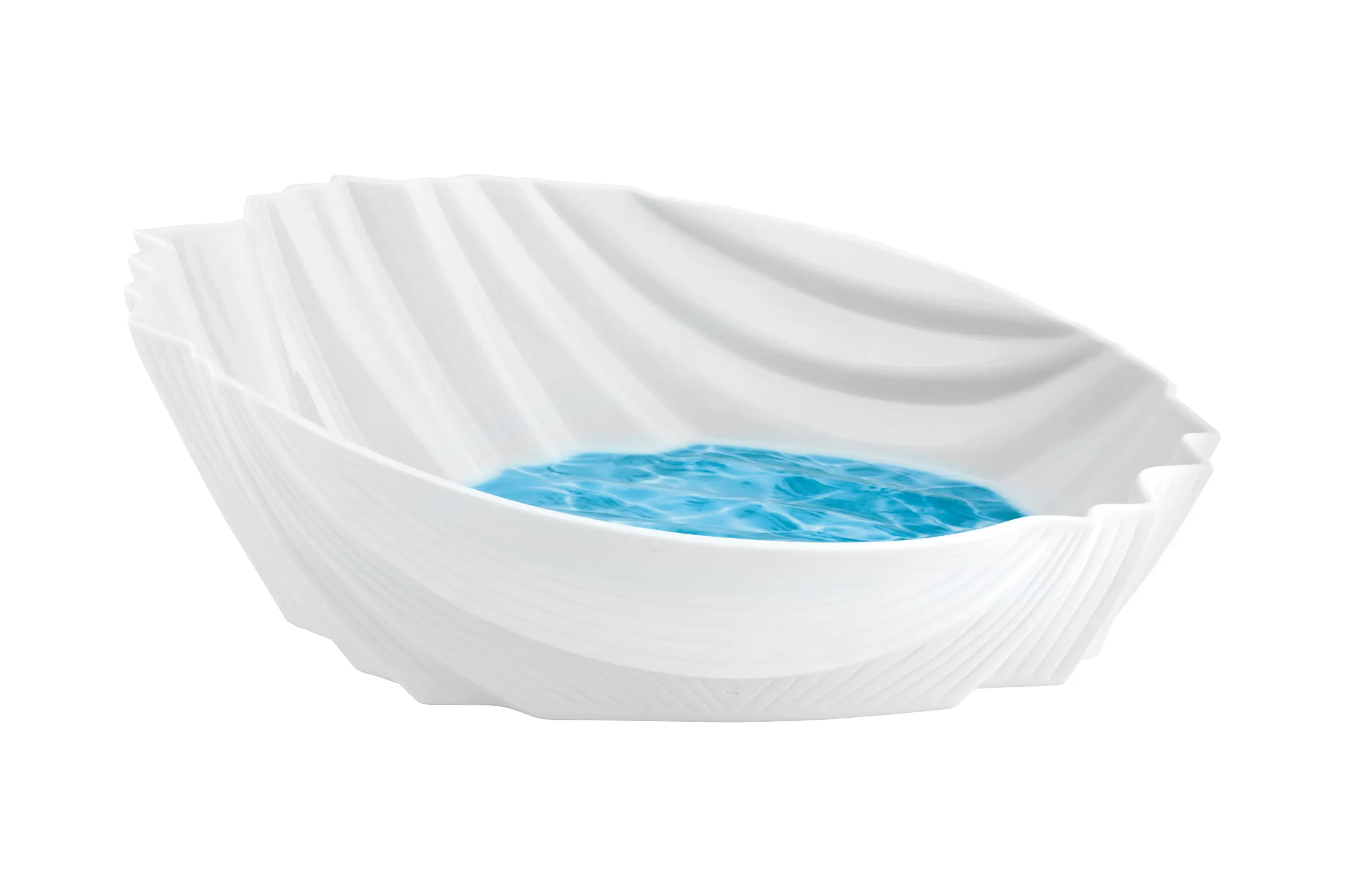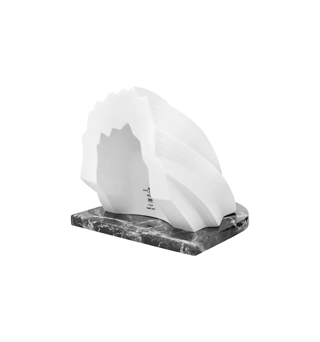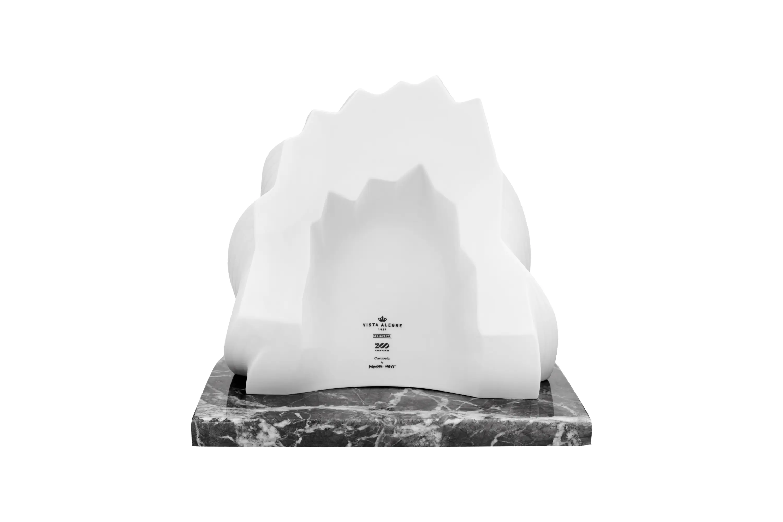 The Caravela collection celebrates the spirit of Portuguese maritime exploration in the 15th century. Inspired by the wonder and harshness of these adventures, Caravela reflects elements such as the curved lines of ship hulls, the jagged profile reminiscent of the steep rocks of cliffs, and shapes that evoke both ship sails and ocean waves. Handcrafted, these sculptural pieces with a white biscuit surface contrasting with the glazed interior (and, in the case of the bookends, with the gray marble bases) bring a bit of Portuguese nautical heritage to contemporary decor, uniting history and modern design.