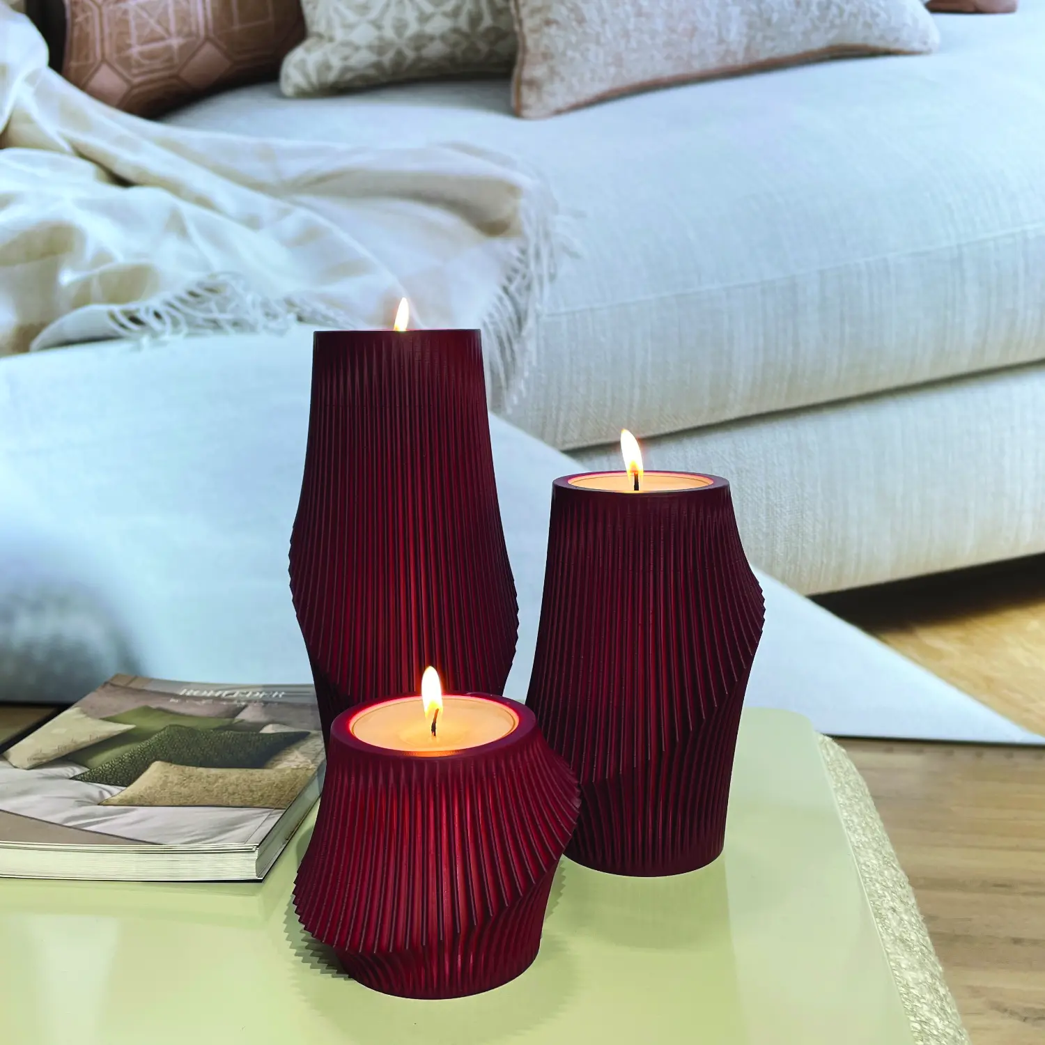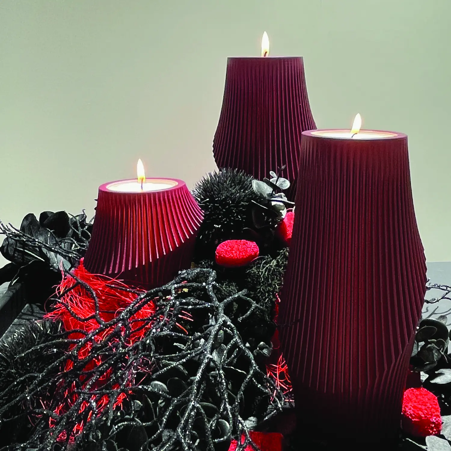 Our FIRA series combines sculptural elegance with state-of-the-art manufacturing technology to create a clean design. Its flowing, folded structures create a fascinating interplay of light and shadow, creating an atmospheric ambience. Sustainable thanks to 3D printing and manufactured entirely in Germany, they stand for innovative design, precision, and responsible production. Durable, lightweight, and featuring a unique design language, these tea light holders embody a contemporary approach to decorative lighting. FIRA is available in three sizes and the colours ecru, cloud gray, cappuccino, frosty mint, and merlot red.