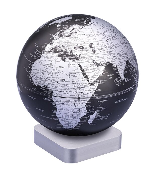 The globe with a 3D-printed stand made from recycled materials combines sustainability with modern aesthetics. The innovative use of recycled bioplastic for the stand reflects a strong commitment to eco-friendly design. The magnetic connection between the globe and the base offers a practical and elegant solution for contemporary living spaces.