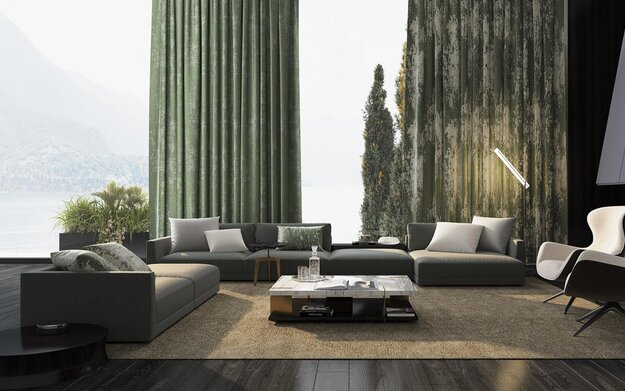 The REFLECTION collection presents fascinating jacquard fabrics with unusual textures that create a unique effect. The modern and irregular patterns are reminiscent of broken surfaces and leave room for individual interpretations. The identical colour range of the three fabrics allows for inspiring combinations and creates a special atmosphere with shades such as Waterfall, Foam White and Moss Green. Thanks to the use of recycled polyester, the REFLECTION collection can be produced under environmentally friendly conditions.