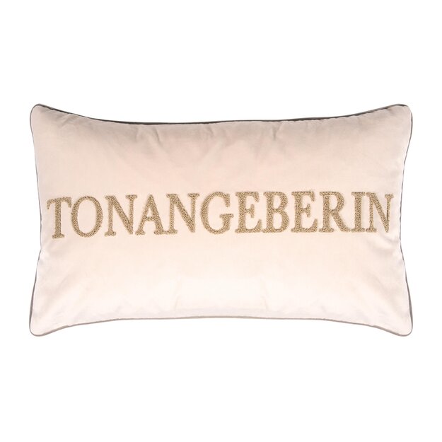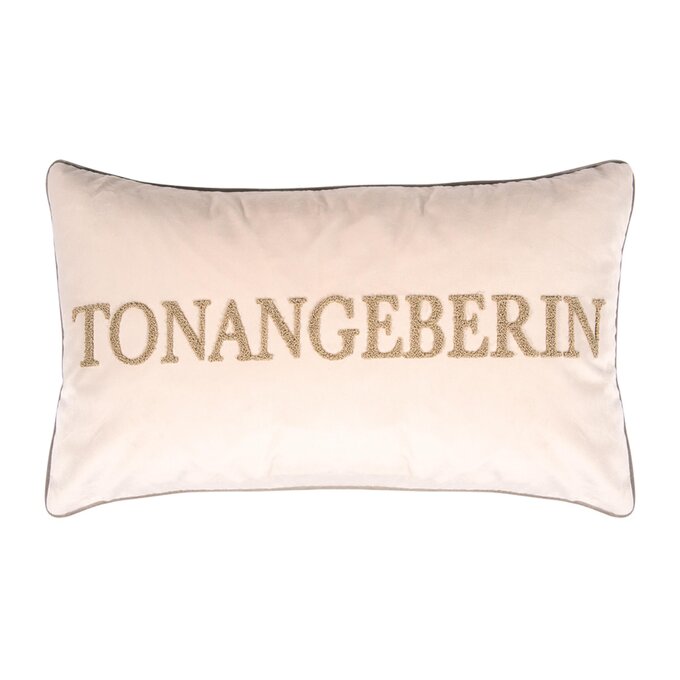 With its original and self-confident statement, the “Tonangeberin” cushion cover integrates current social trends into home decor. The harmonious combination of soft velvet and contrasting terrycloth embroidery gives the product a modern expression that addresses female self-determination with a humorous wink.