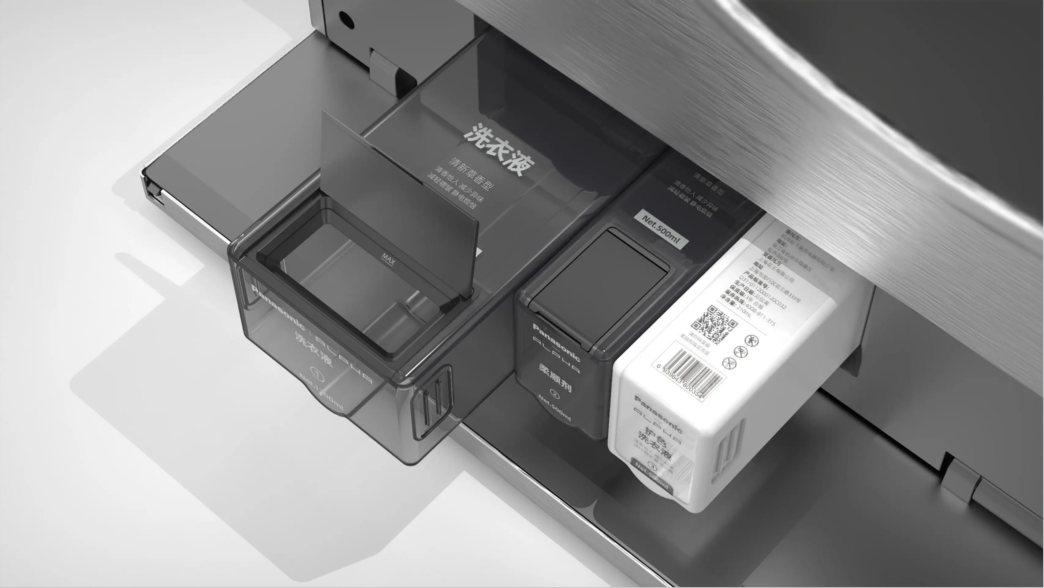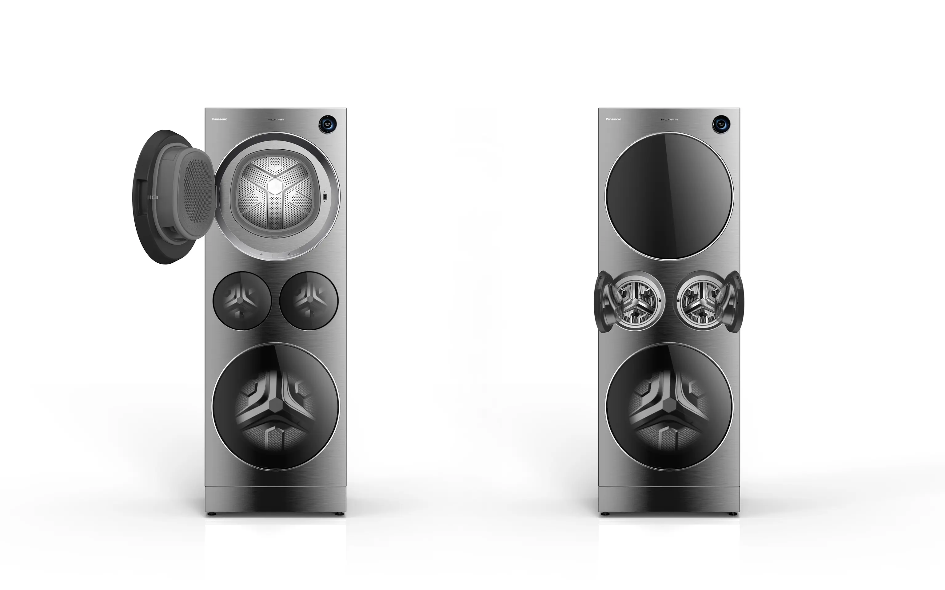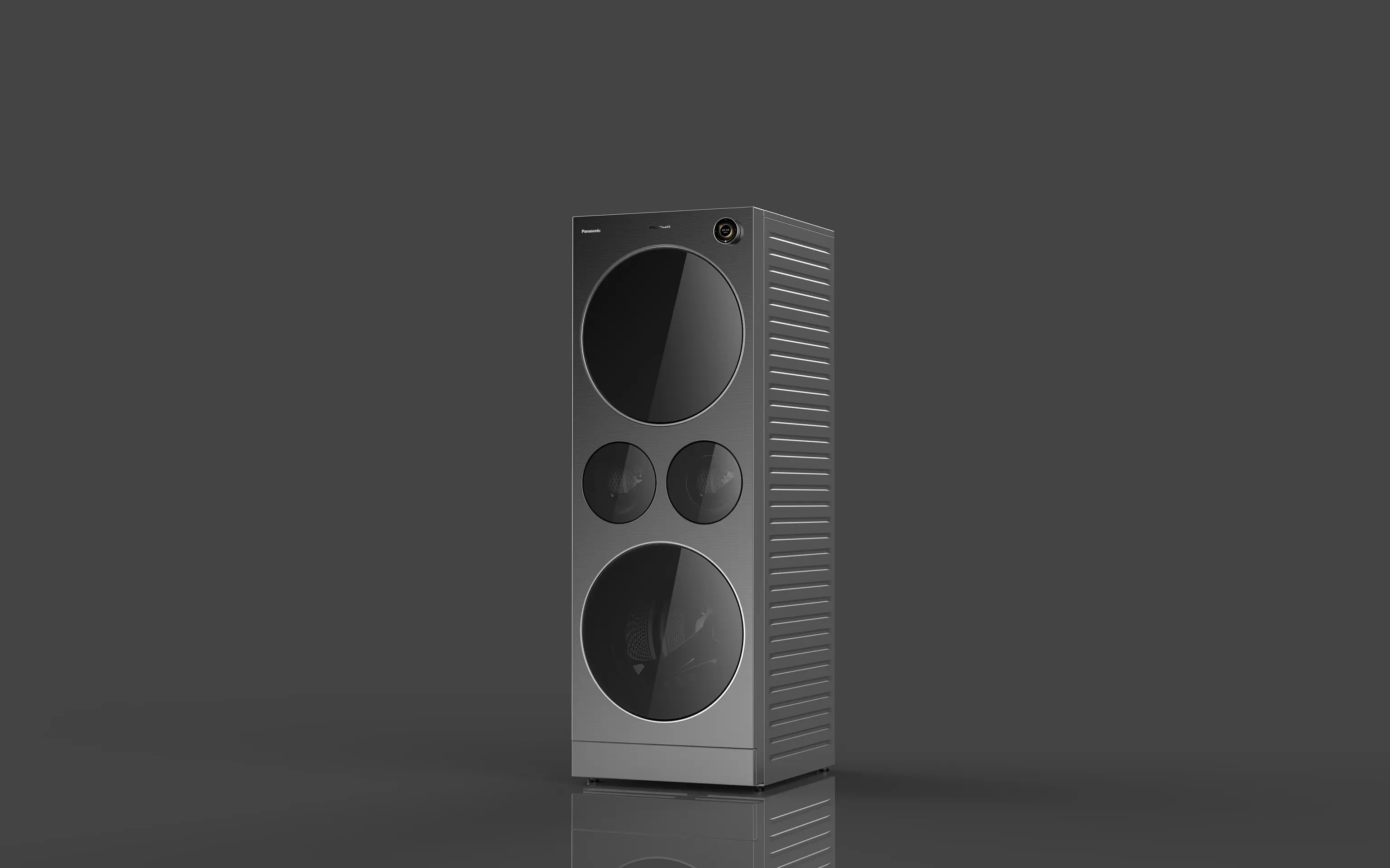 The Panasonic NA-G5 is the industry's most advanced 4-in-1 heat pump washer-dryer-care system for comprehensive home laundry care. It consists of a 13kg washer-dryer, 12kg dryer-care machine, and two 1kg mini washers, with independently operating drums enabling efficient categorized laundry care. Its frame-integrated body boasts a minimalist, flush design, complemented by a stainless steel brushed front panel and seamlessly embedded tempered glass doors. The magnetic LCD control knob allows for mobile/remote operation and serves as a central hub for managing multiple devices, perfectly blending intelligent technology with user-centric design.