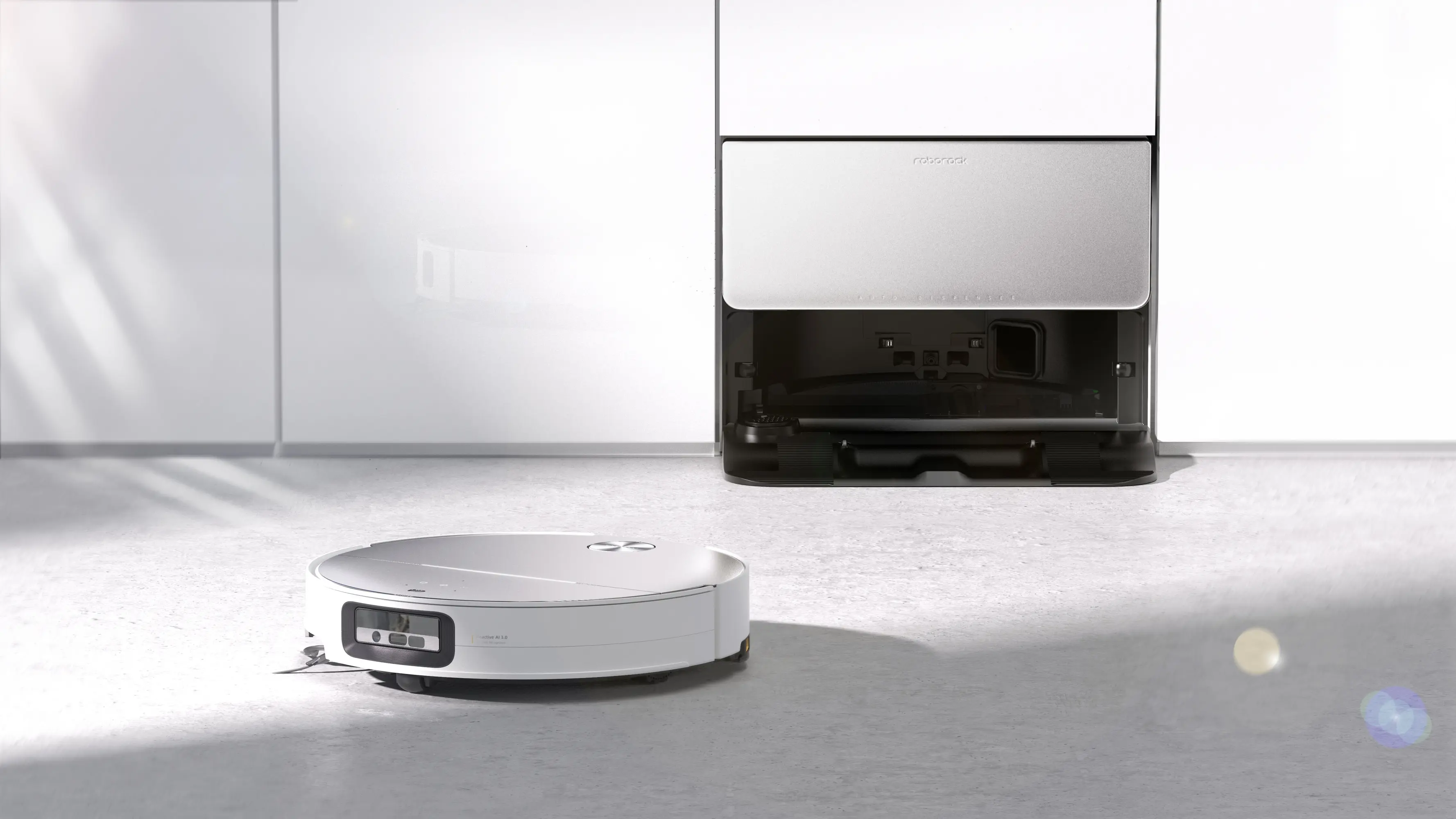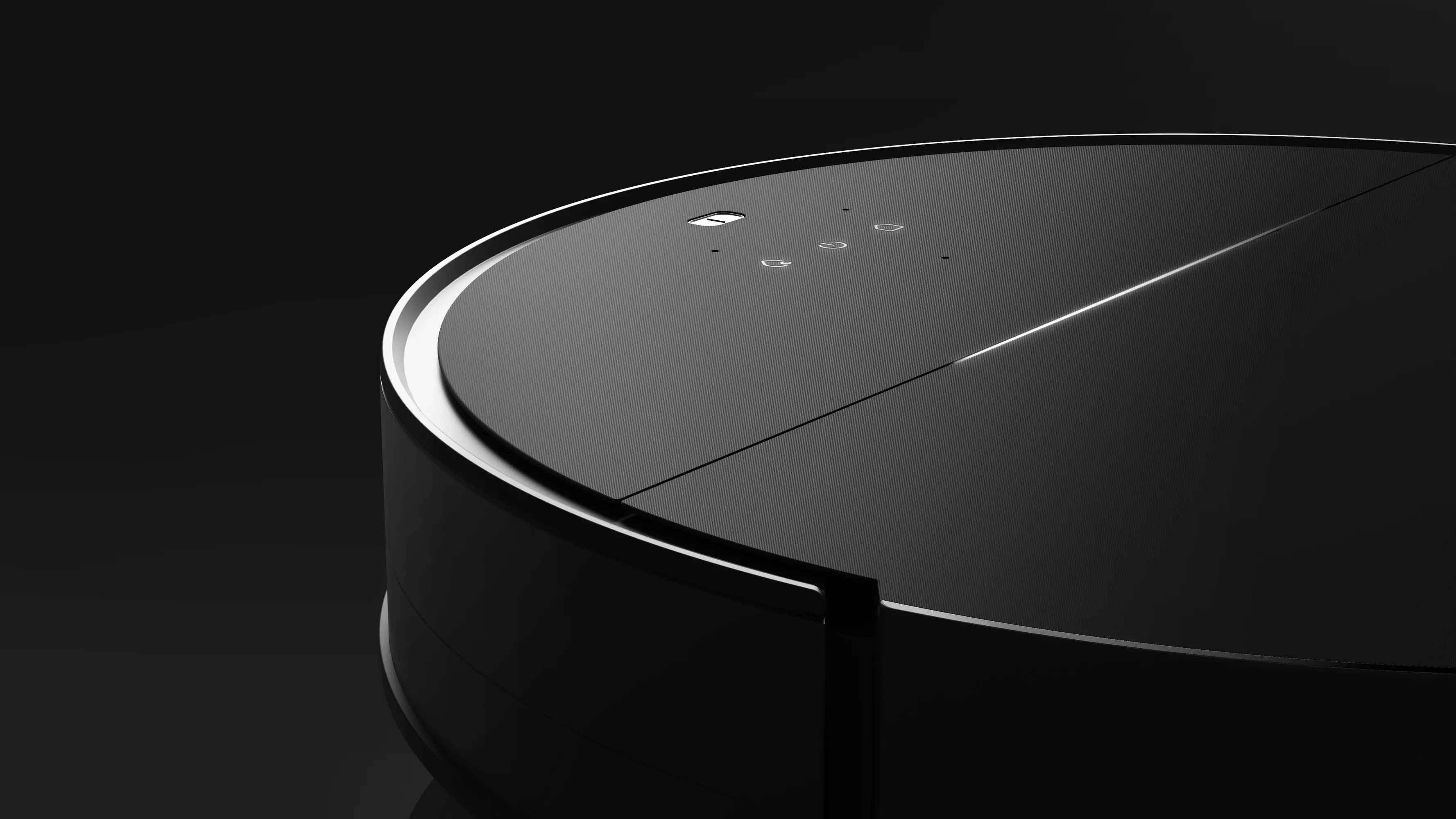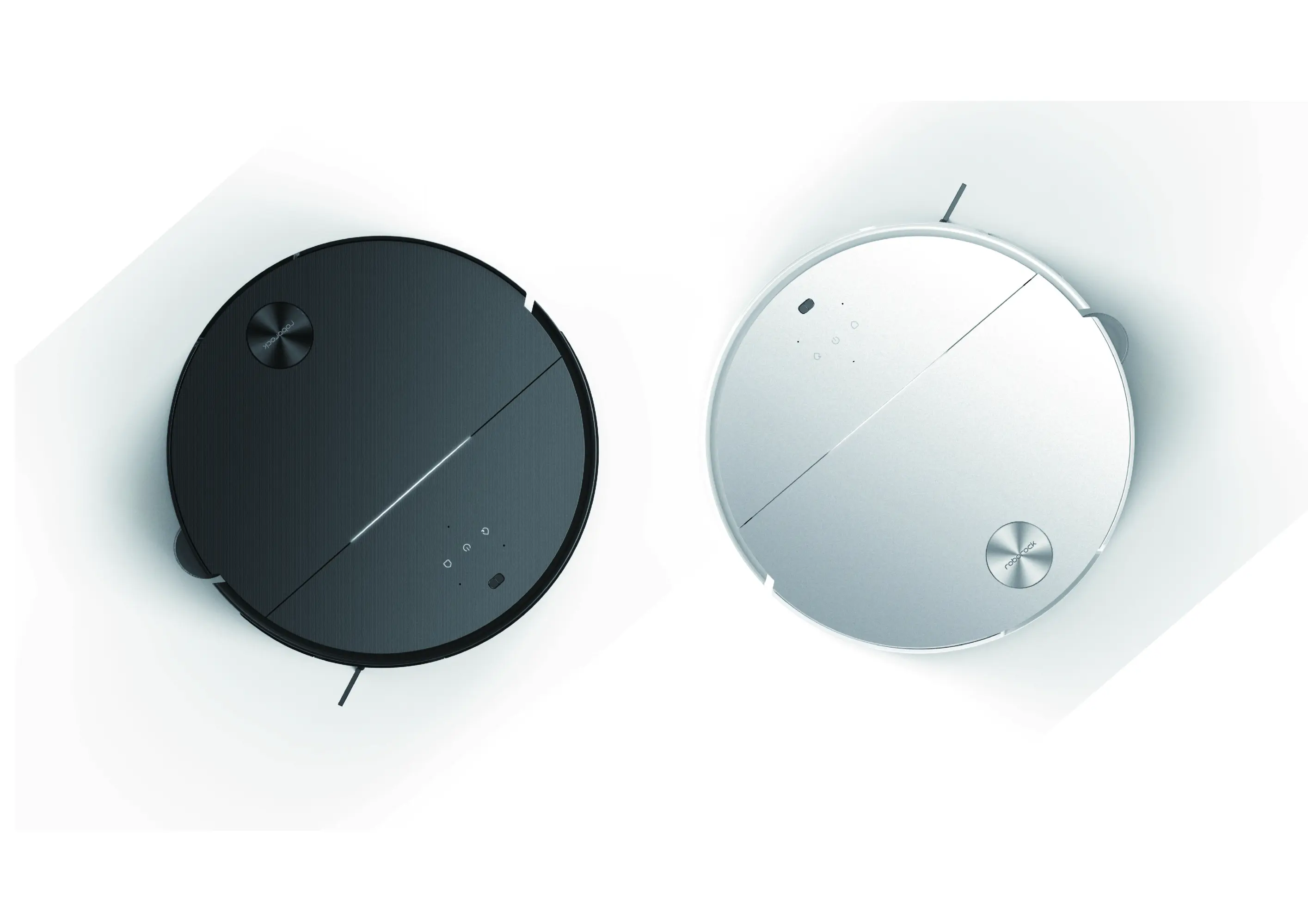 This is an ultra-thin home floor cleaning robot. Its retractable LiDAR lowers the body thickness to 7.98 cm, enabling it to access and clean most low spaces beneath furniture. The combination of a silver top cover and white edges creates a sleek, streamlined appearance that enhances its modern aesthetic while emphasizing a minimalist design language. This design allows the robot to blend seamlessly into most home environments, embodying the essence of a cleaning tool without unnecessary intrusion to users.