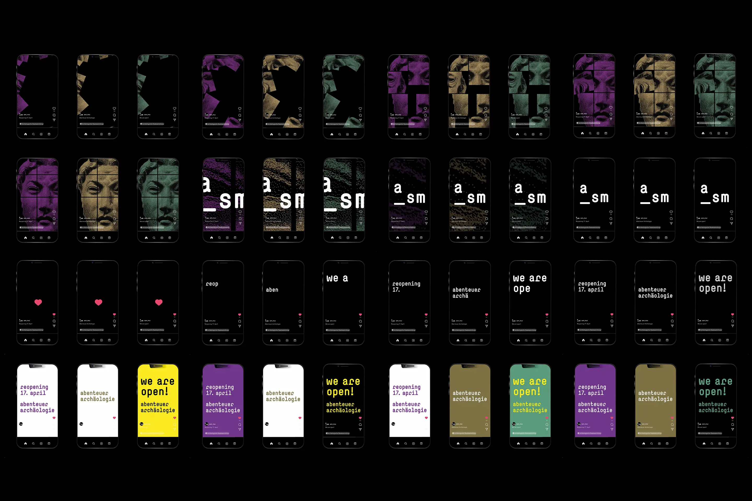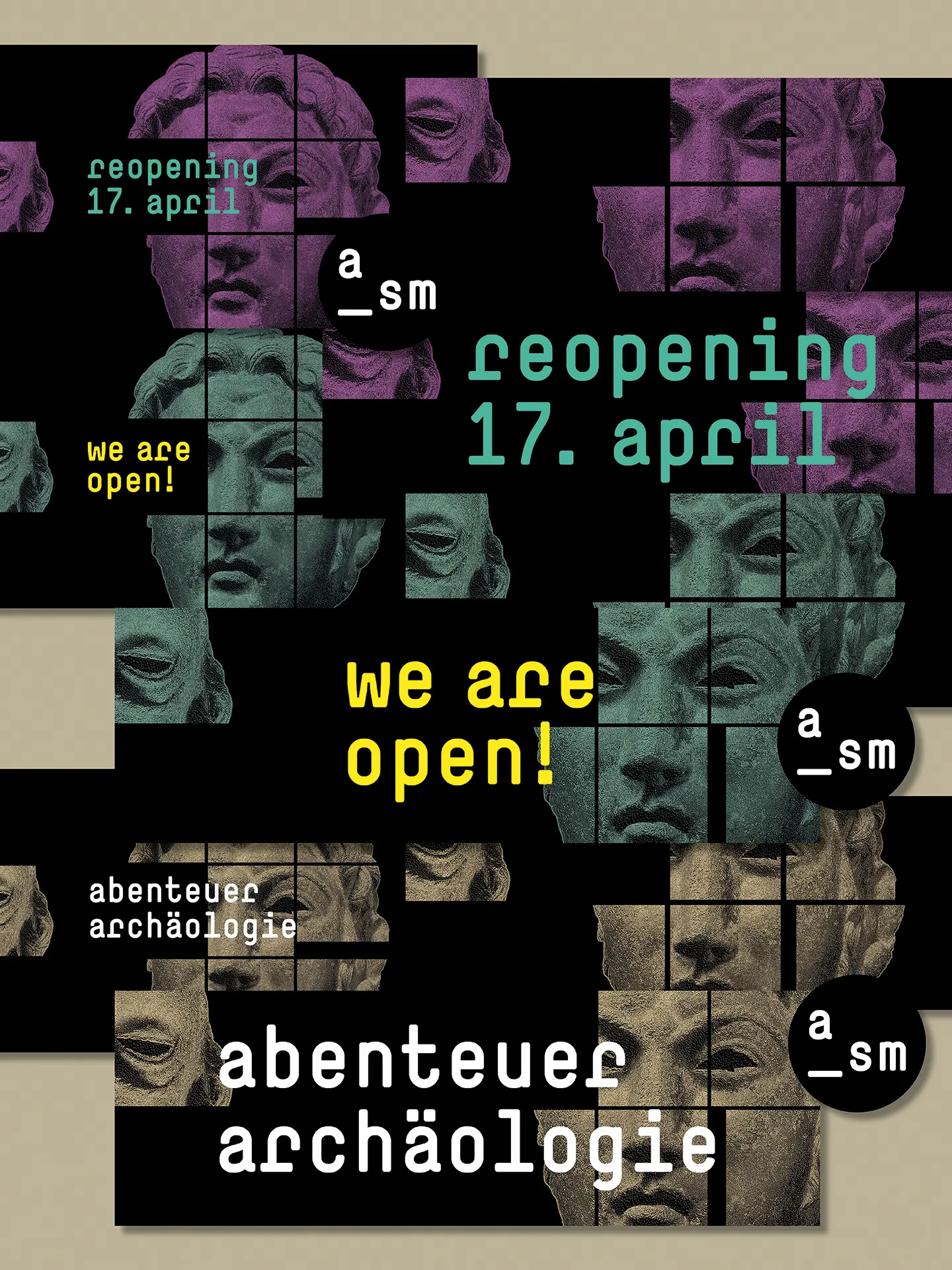 In April 2024, the State Archaeological Collection in Munich celebrated the reopening of its museum. The striking building, clad in Corten steel, was extensively renovated and redesigned. For the reopening, we developed a campaign featuring posters, advertisements, and social media posts. We also redesigned the visual identity and planned the signage. Our design combines minimalist, contemporary elements with digital technologies and the museum’s timeless architecture. The result is a visual concept that highlights the museum’s modernity while preserving the historical significance of the collection.