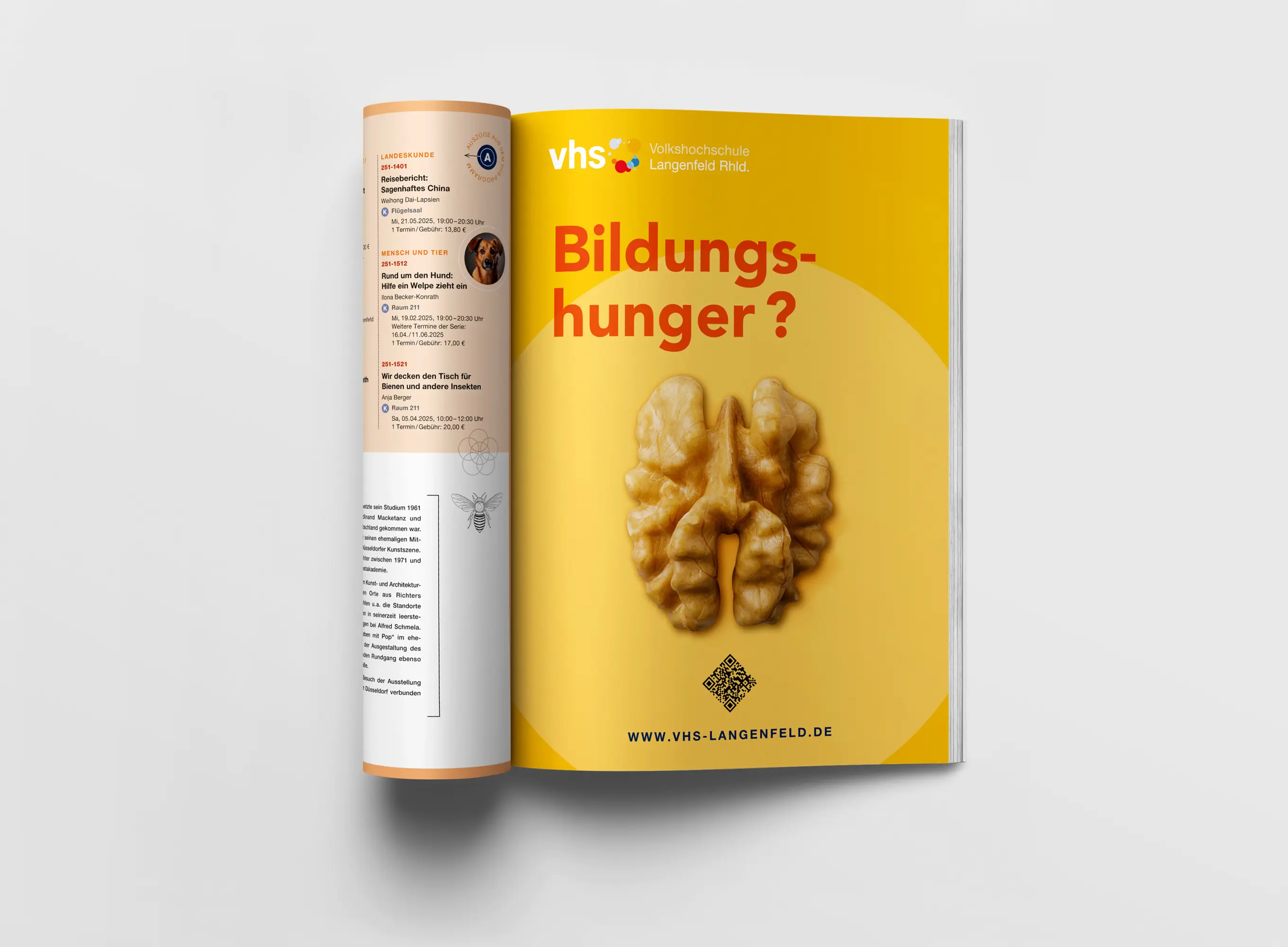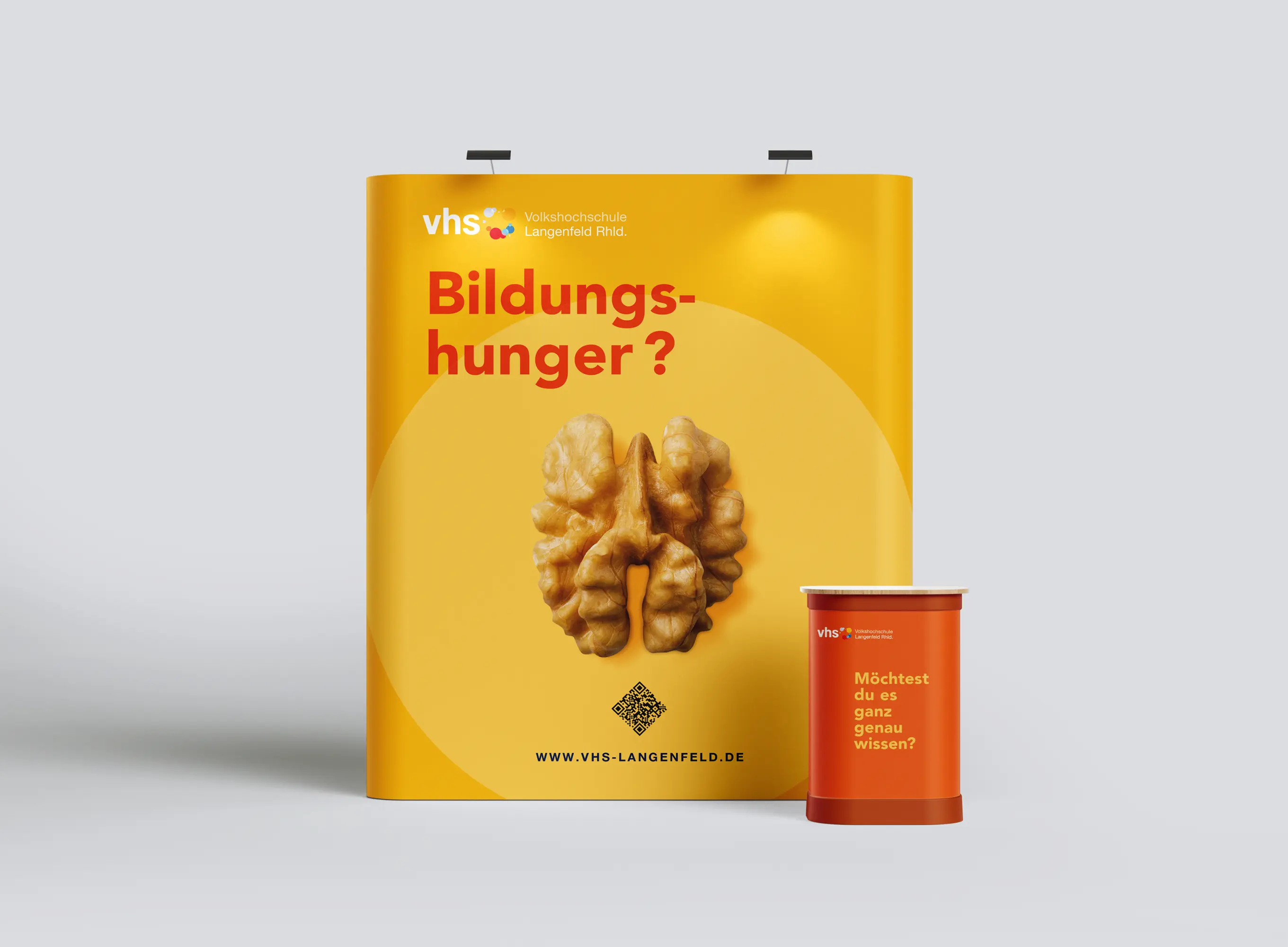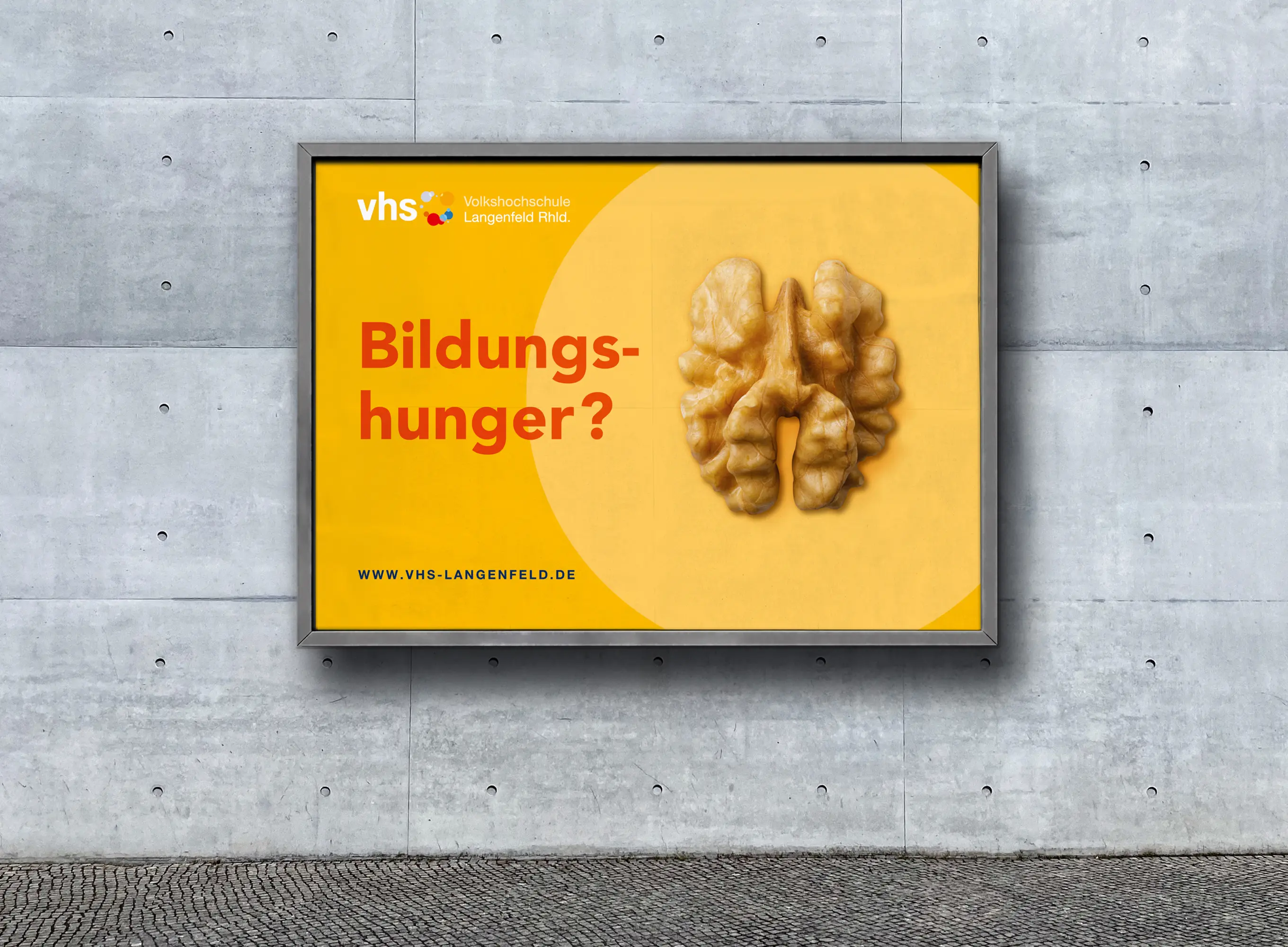The adult education center („Volkshochschule“, abbreviated to VHS) is a continuing education institution found in most German cities and municipalities. Due to the broad spectrum of programs available to citizens of all ages, there is often the problem that these programs are perceived as leisure activities or pastimes. A campaign was therefore launched for the VHS in Langenfeld/Rhineland with the goal of explicitly positioning it as an educational institution. Dedicated instructors impart contemporary knowledge using modern and digital technology. The personal added value lies in expanding and updating one’s own knowledge through the VHS.