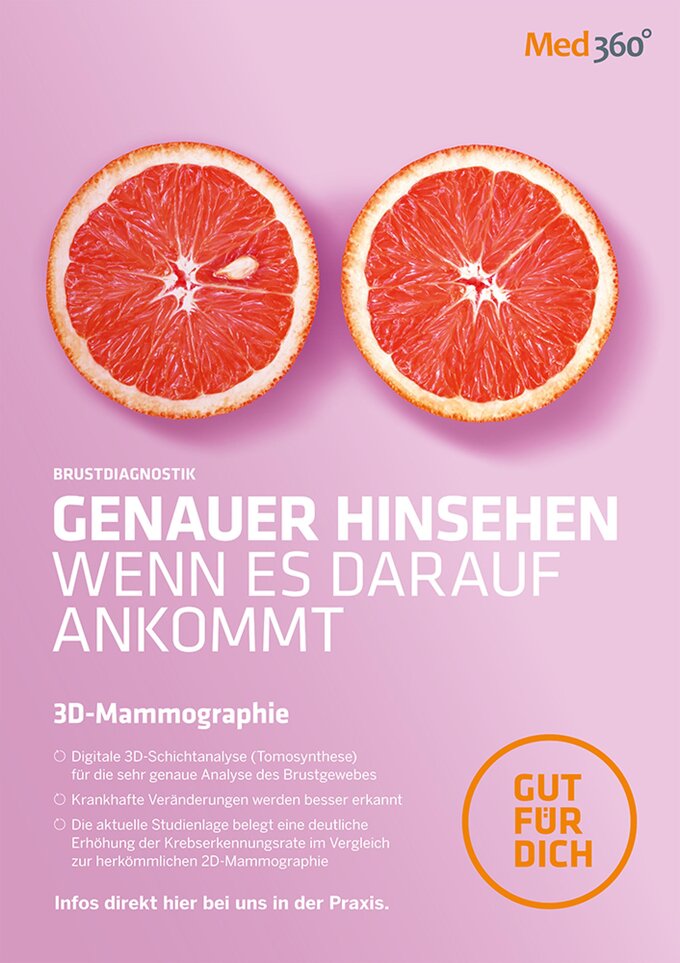 Take a closer look: When it comes to breast cancer screening, early and reliable diagnosis is crucial to detect tumours in good time and significantly increase the chances of recovery. However, it is almost equally important to avoid false-positive findings. It can therefore make sense to take a closer look and supplement a mammogram with tomosynthesis, also known as 3D mammography. This method enables better detection of pathological tissue changes and increases the cancer detection rate, while at the same time reducing the number of false-positive findings. The campaign aims to raise awareness of this procedure.