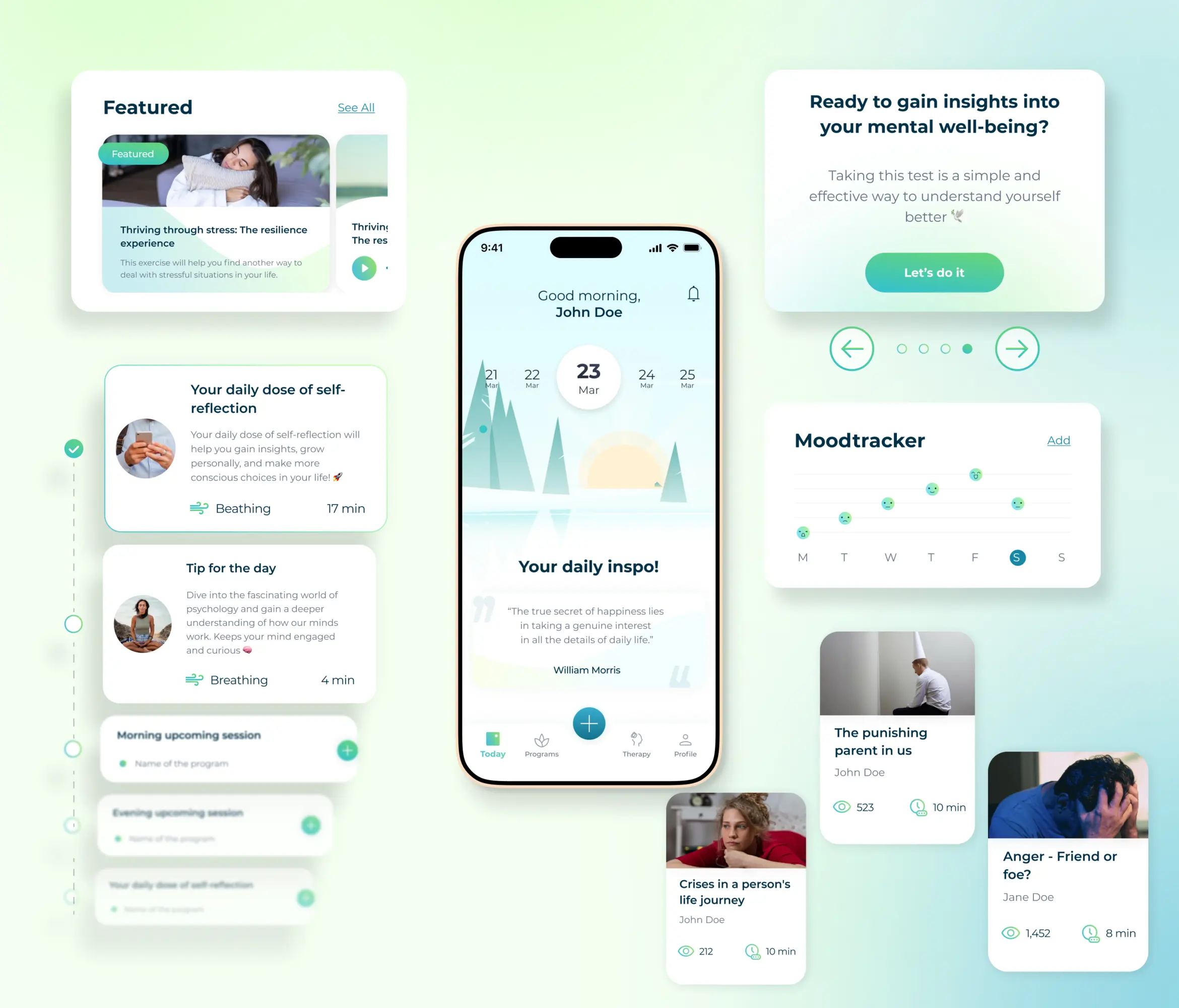Mentaware is a WCAG-compliant mental health app bridging people and professional support. Users can securely book therapy sessions, track mood, and access guided meditations, breathing exercises, and self-help modules. Designed with a calm, intuitive UI and evidence-based principles, it creates a private, stigma-free space for personal growth. With 10K+ downloads and 4.4 app ratings, Mentaware empowers well-being anywhere, anytime.