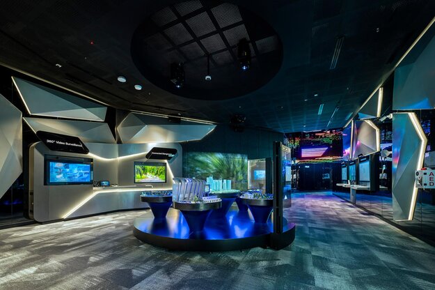 The Smart City model at the My5G Portal in Kuala Lumpur is an immersive exhibit that reveals the invisible streams of data that shape our cities. Visitors explore five real-world scenarios (such as environmental response, medical emergencies, transportation, drones and autonomous vehicles) as they explore the new digital city. Large moveable transparent displays and projection-mapped animations blend digital and augmented reality with a suite of urban models. The impact is an immersive real-world setting, creating a detailed and engaging interactive experience that allows visitors to see and feel the impact of Smart City technology.