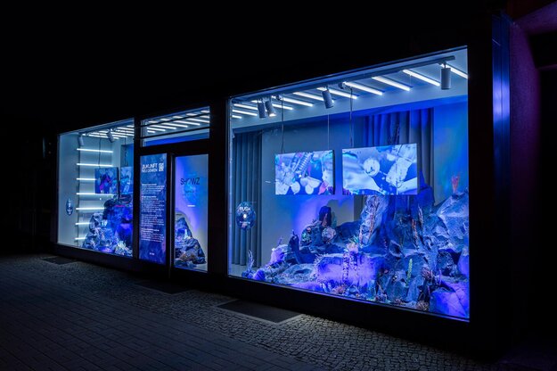 The interactive store window installation opposite a school impressively demonstrates the transformation of polluted to clean oceans, raising awareness for sustainability. By using touch sensors and an AI-powered AR avatar, it enhances environmental consciousness. The use of recycled materials emphasizes its eco-friendly approach.