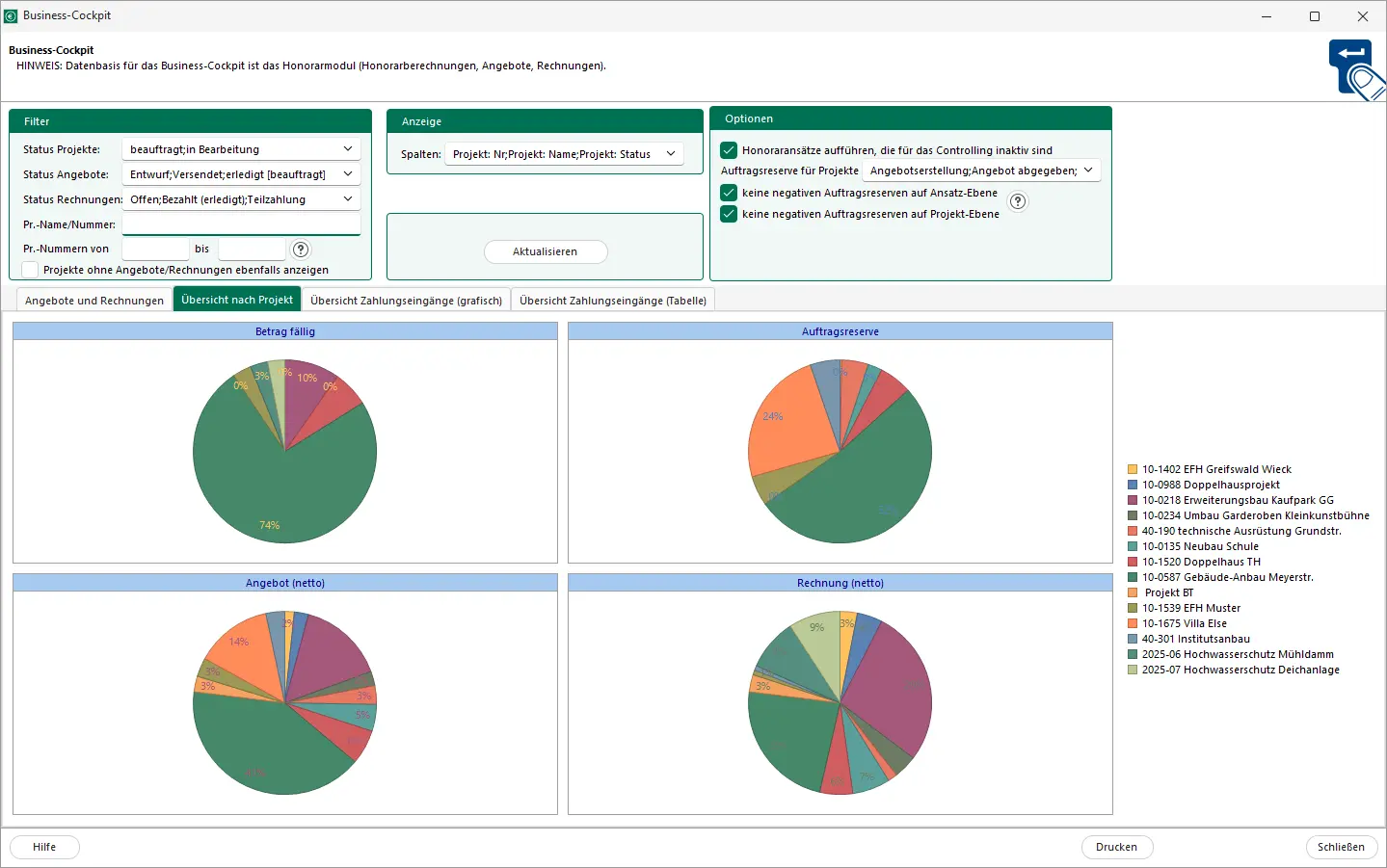 Weise-Control offers sophisticated, clearly structured project management with intuitive user guidance for the planning, control, documentation, and billing of projects in an architecture or engineering office. The user-friendly design enables easy data entry and analysis. Intuitive evaluations facilitate decision-making and action planning. The attractive interface is optimized for different skill levels and enables seamless integration into everyday work.