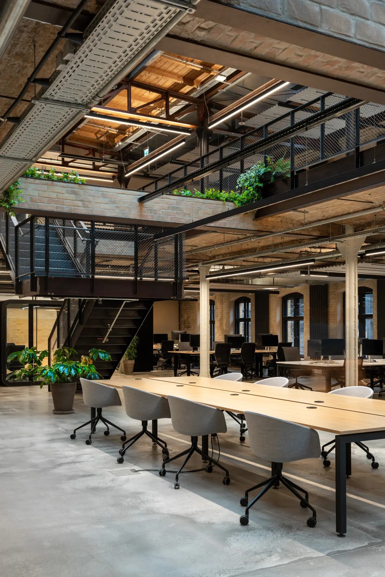 The new Gorillas Headquarters finds its home in the historic Bötzow Brewery, a listed landmark of Berlin’s industrial heritage. The project posed the central challenge of reconciling the demands of a modern, highly flexible workplace with the constraints and character of a protected monument. By seamlessly weaving the requirements of contemporary office life into the brewery’s historic character, the project creates a memorable and authentic environment—one that bridges past and present, and communicates Gorillas’ unique work culture in a way that is both bold and respectful of its context.