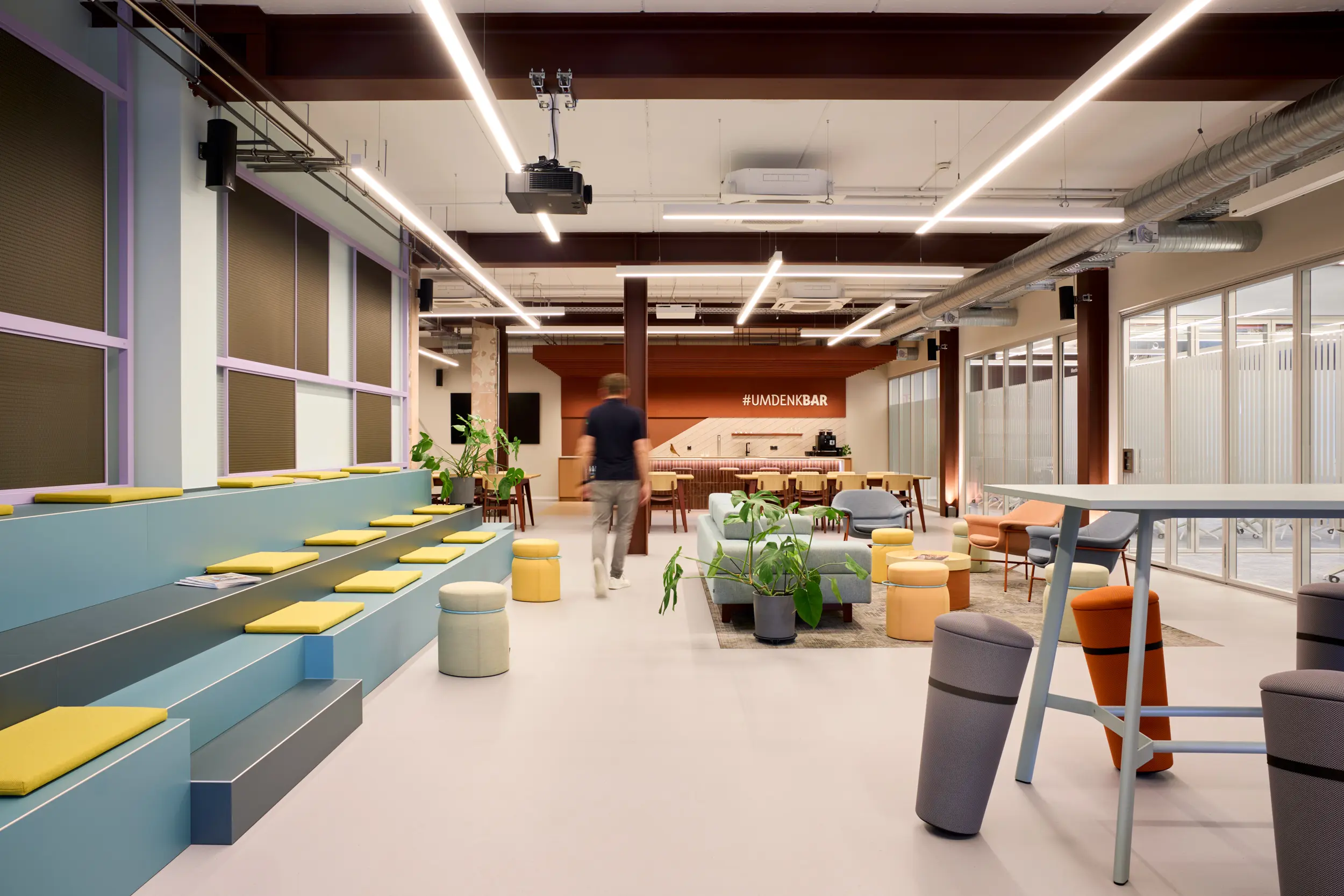 Conversion of an existing space into a multifunctional meeting/co-working and event area.
