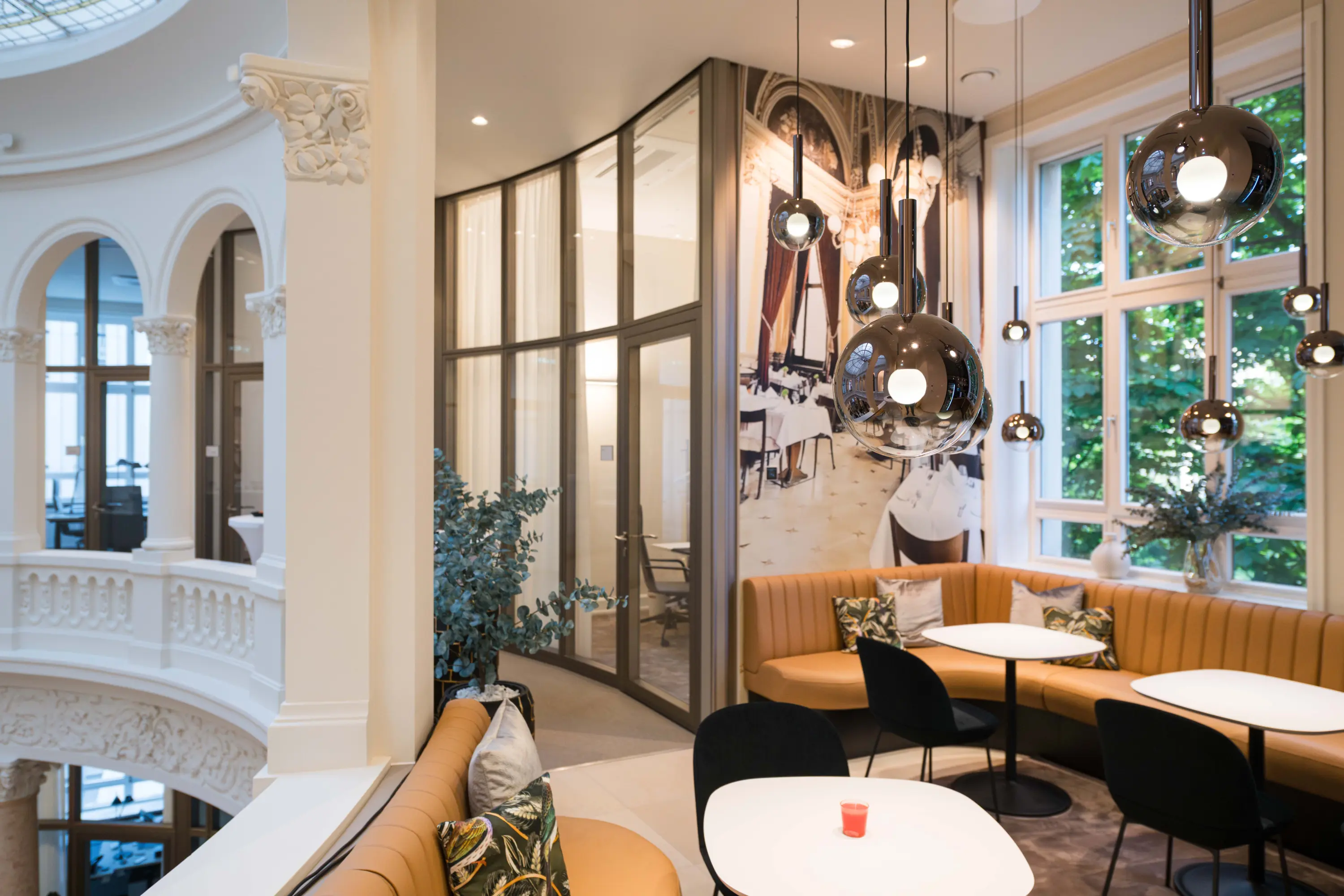 The Villa Sander in Frankfurt combines listed architecture with state-of-the-art office design. The award-winning pureSilent® concept, which already won the ICONIC AWARD in 2021, ensures maximum concentration and productivity. Exclusive private offices, coworking spaces, fireplace lounges and think tanks offer stylish retreats. Sustainable materials, acoustic optimization and innovative design make Villa Sander an icon of modern working environments.